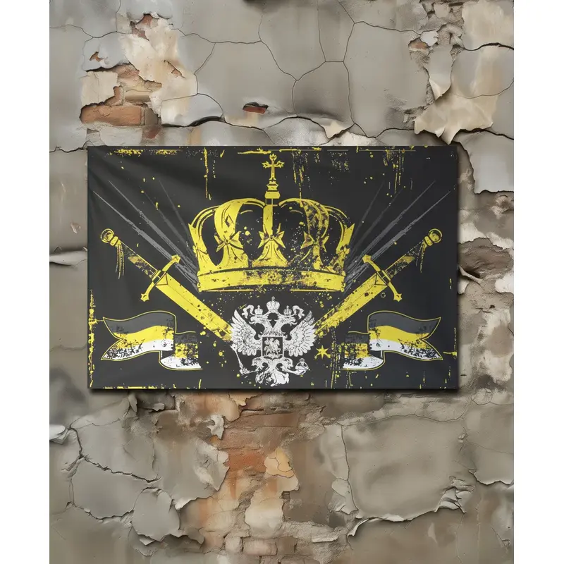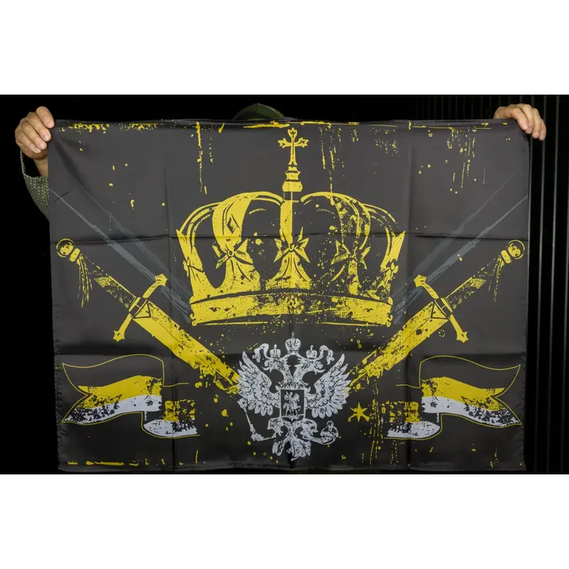 Флаг Корона Российской Империи, полиэфирный шелк, односторонний, размер большой 75х100 см.