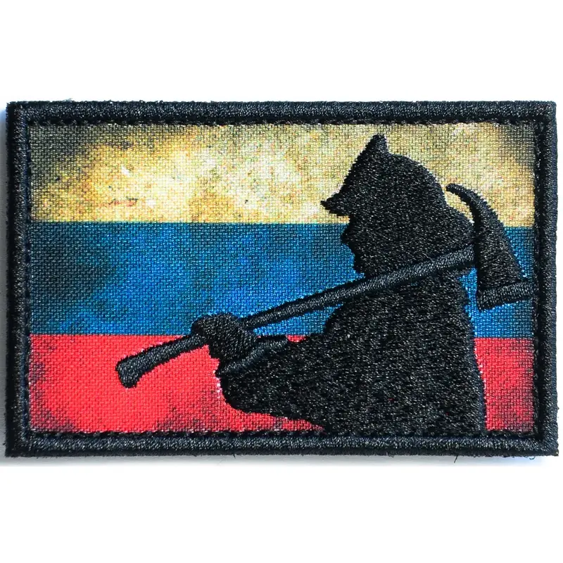 Нашивка, патч "Силуэт пожарного на фоне триколора" тактическая с липучкой