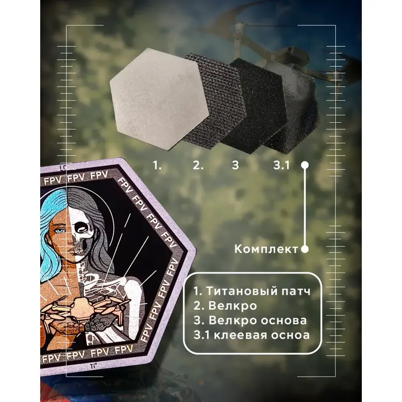 Патч с Военным Духом! Эксклюзивная лазерная гравировка на прочном титане. Уникальные дизайны для операторов FPV дронов, пехоты, ВДВ и ценителей милитари-стиля. Надежное и долговечное украшение для экипировки или повседневного аксессуара! Характеристики Размер 46x40x2 мм | Титан | Комплект Велкро (основа+липучка) | Нашивка на липучке Стильный и уникальный аксессуар Металлический патч Подразделения FPV-дронов "Небесный Судья" – уникальная нашивка из титана с лазерной детализацией. Липучка велкро обеспечивает удобное крепление.