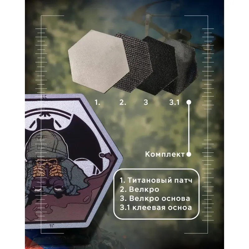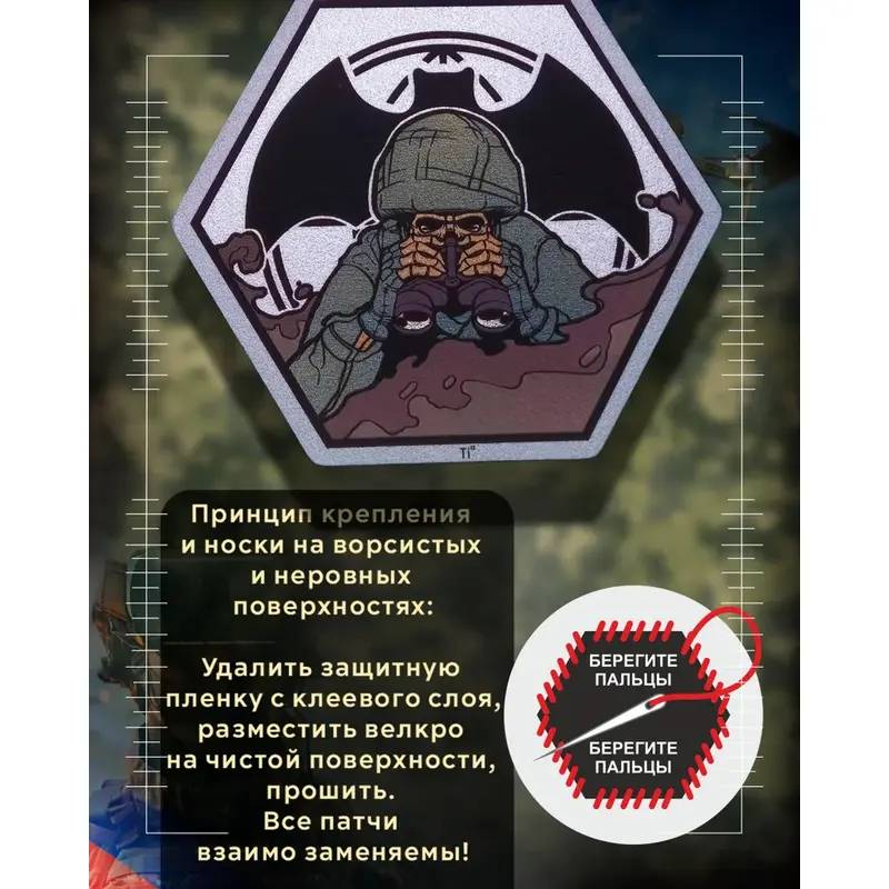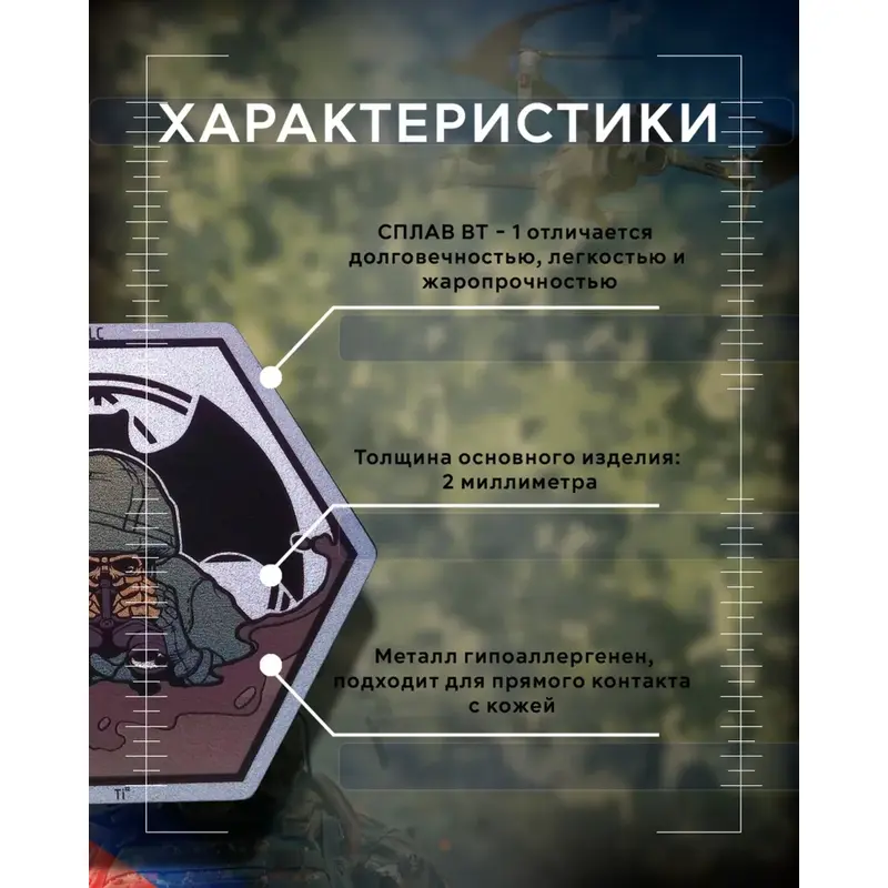 Патч с Военным Духом! Эксклюзивная лазерная гравировка на прочном титане. Уникальные дизайны для операторов FPV дронов, пехоты, ВДВ и ценителей милитари-стиля. Надежное и долговечное украшение для экипировки или повседневного аксессуара! Характеристики Размер 46x40x2 мм | Титан | Комплект Велкро (основа+липучка) | Нашивка на липучке Стильный и уникальный аксессуар Металлический патч «Военная Разведка» – уникальная нашивка из титана с лазерной детализацией. Липучка велкро обеспечивает удобное крепление.