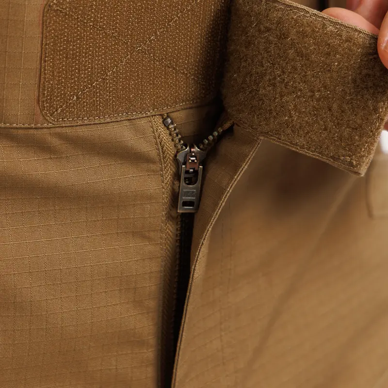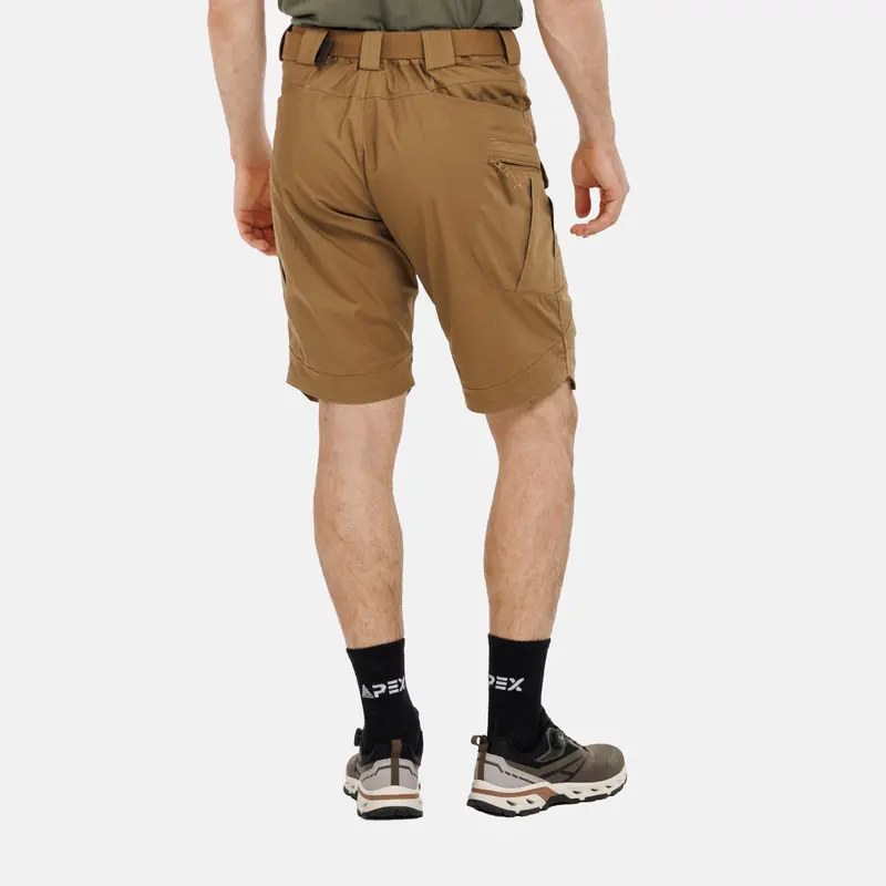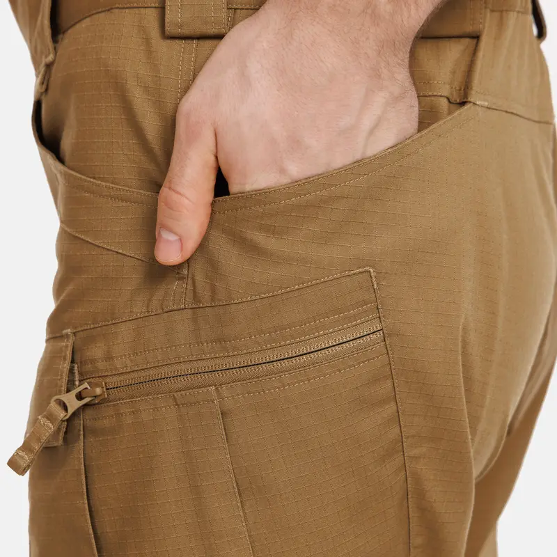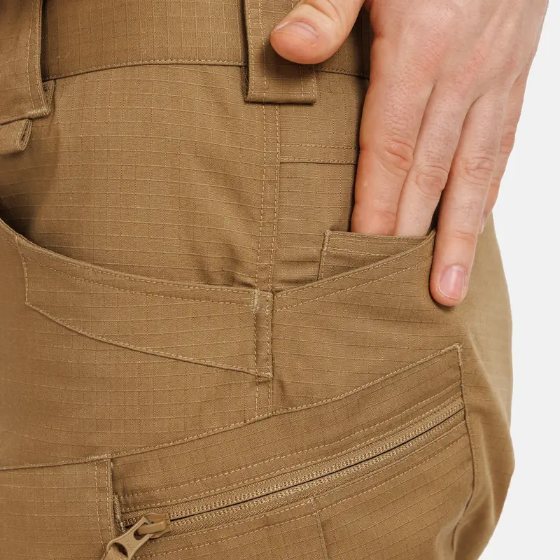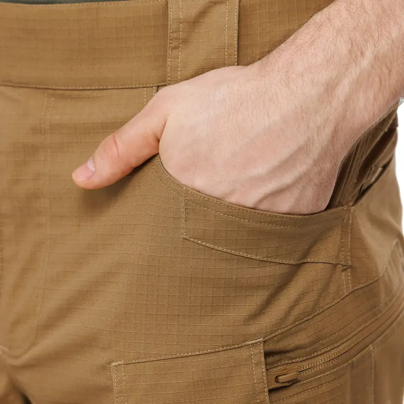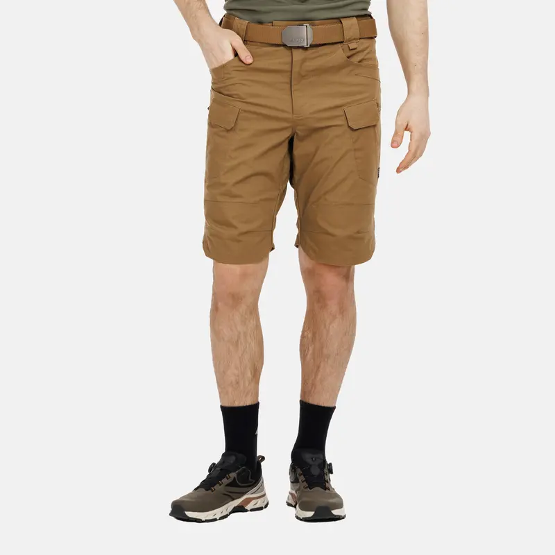 Шорты KONGUR 11 - адаптированы для жарких погодных условий и дают большую свободу передвижения. Подойдут для правоохранительных органов и использования в военных целях, также в качестве городской или загородной одежды на жару. Особенности: *эластичный пояс с застежкой на липучке для возможности точной подгонки по фигуре, *две петли для ключей, совместимые с D-кольцами или карабинами, *два передних кармана с усиленными краями для крепления ножа, *два широких задних кармана с быстрым доступом, *два тонких задних кармана для складного ножа, фонаря или пистолетных магазинов, *два набедренных кармана карго на молнии, *два набедренных кармана на текстильной липучке для смартфонов или небольших магазинов, *ширинка на молнии YKK®. Идеально для: • туризма, • повседневной носки, • тактических задач. Материалы: ОСНОВНАЯ ТКАНЬ: 65% Полиэстер 32% Хлопок 3% Эластан ОТДЕЛОЧНАЯ ТКАНЬ: 80% Полиэстер 20% Хлопок Вес: 457 г Плотность: 210 г/м2 Технологии: 2Way Elastic, Молнии YKK.