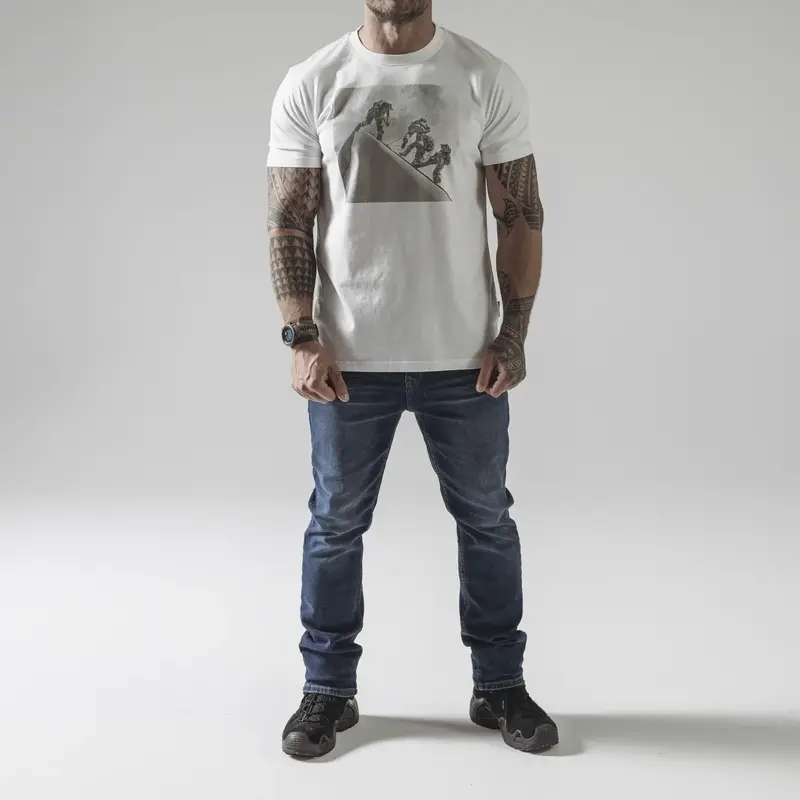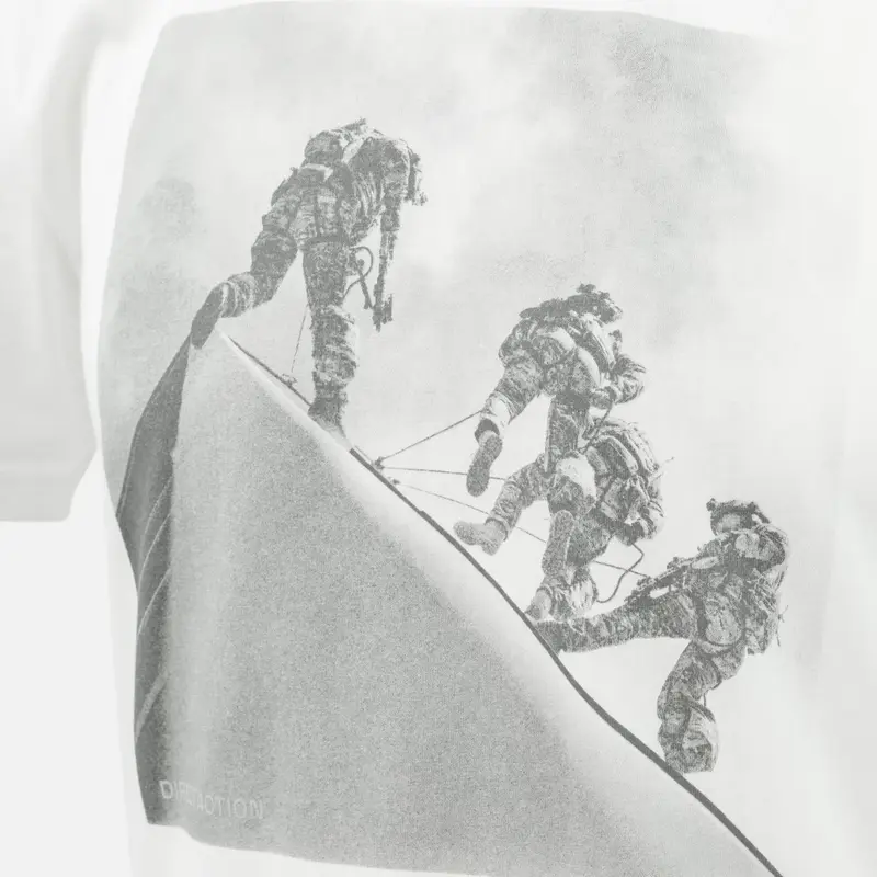 Футболка с силуэтами операторов, спускающихся по канатам на стене здания.