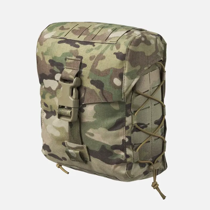 Большая универсальная сумка, предназначенная в основном для ношения на задней части модульного ремня MOSQUITO® или аналогичной конструкции ремня. Большая вместительная сумка позволяет упаковать все необходимое, а воротник-кулиска надежно фиксирует содержимое, а клапан с застежкой защищает от пыли и грязи. Новые функции включают систему лазерной резки, совместимую с MOLLE/PALS, на клапане крышки коробки, закрывающемся на пряжку, и дополнительный паракорд по бокам, чтобы уменьшить объем пустого места или прикрепить предметы. Подсумок не только совместим с модульной системой MOLLE/PALS, но и, благодаря петлям из паракорда, может крепиться на любой оружейный ремень шириной до 45 мм.