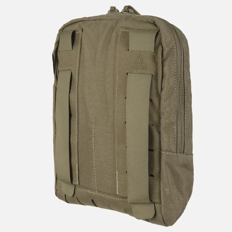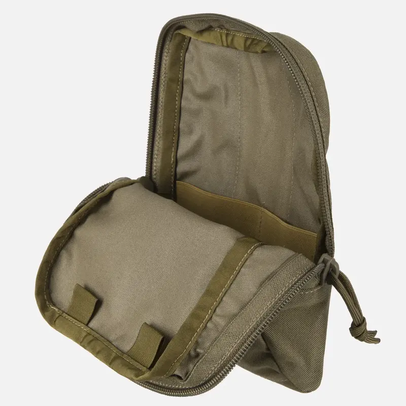 Эластичные ремешки для фиксации мелких предметов, таких как инструменты, батарейки или медицинские принадлежности, находятся внутри. В нижней части чехла имеются дополнительные прорези MOLLE/PALS, которые идеально подходят для крепления небольшого чехла или химических лампочек.