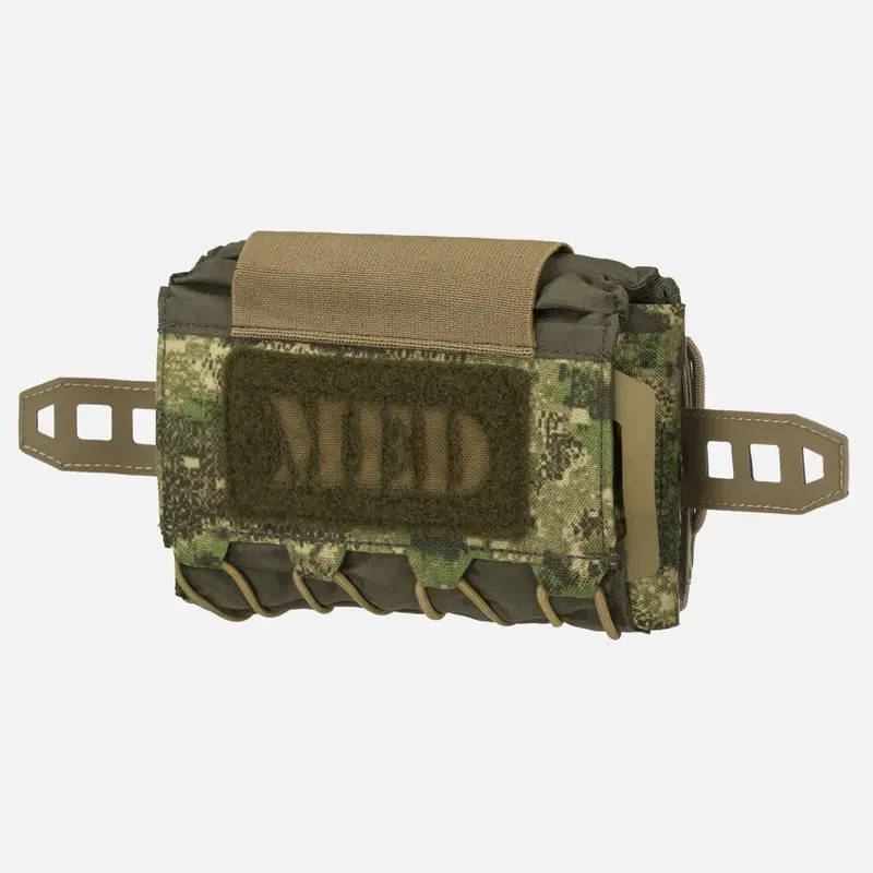 Компактная горизонтальная медицинская сумка – это низкопрофильная персональная аптечка первой помощи, предназначенная для ношения сзади на поясе. Изготовленный из комбинации 500D Cordura®, 210D нейлона и ламината лазерной резки, он сочетает в себе прочность и легкость конструкции. Несмотря на то, что он идеально сочетается с такими системами, как скелетонизированная втулка для ремня Hornet, его также можно закрепить на любом ремне шириной до 45 мм или на платформах MOLLE/PALS благодаря боковым петлям из паракорда.