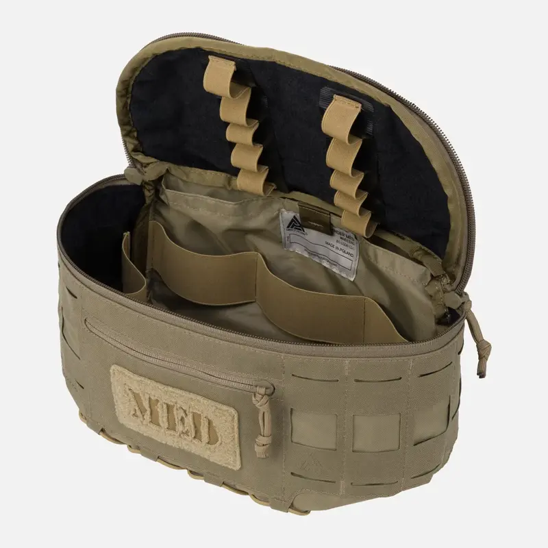 Поясная сумка Lysander MED - это низкопрофильная медицинская поясная сумка, предназначенная для переноски необходимого спасательного снаряжения без ущерба для мобильности. Его эргономичная форма позволяет носить его непосредственно под держателем пластины, что делает его идеальным решением для работы в стесненных условиях, при эксплуатации транспортных средств или в условиях CQB.Основное отделение застегивается на две молнии и отделано мягкой липучкой для крепления входящих в комплект настраиваемых вставок с эластичными петлями и карманами, что позволяет настроить комплектацию в соответствии с вашими медицинскими требованиями. В переднем кармане на молнии хранятся защитные перчатки, а заднее плоское отделение с застежкой на крючок и петлю идеально подходит для наложения давящих повязок или больших кровоостанавливающих пакетов.