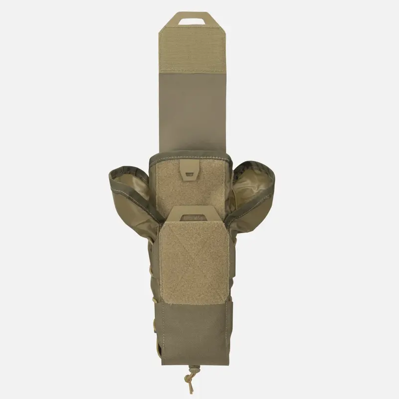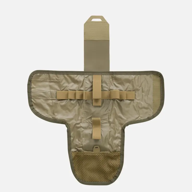 Этот вертикальный рюкзак, состоящий из двух частей, предназначен для ношения на боковой панели нагрудного устройства или на поясе и занимает столько же места, сколько и подсумок для магазинов. Изготовлен в основном из фирменного ламината и 500D Cordura®. Вкладыш для медицинского оборудования можно быстро развернуть, всего лишь потянув за клапан, закрывающийся на липучку®. Все средства первой помощи надежно закреплены на месте с помощью эластичных петель. Внутренняя часть основного чехла покрыта петлей Velcro®, которая позволяет закрепить внутри наш чехол для ножниц. Подсумок не только совместим с любой модульной платформой MOLLE/PALS, но и может быть установлен на любой оружейный ремень шириной 45 мм.