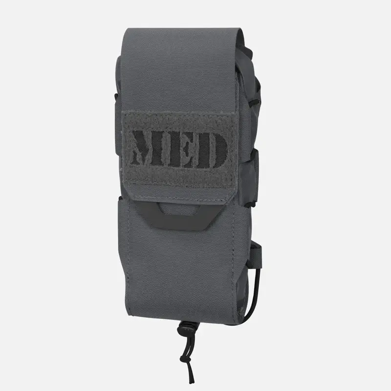 Этот вертикальный рюкзак, состоящий из двух частей, предназначен для ношения на боковой панели нагрудного устройства или на поясе и занимает столько же места, сколько и подсумок для магазинов. Изготовлен в основном из фирменного ламината и 500D Cordura®. Вкладыш для медицинского оборудования можно быстро развернуть, всего лишь потянув за клапан, закрывающийся на липучку®. Все средства первой помощи надежно закреплены на месте с помощью эластичных петель. Внутренняя часть основного чехла покрыта петлей Velcro®, которая позволяет закрепить внутри наш чехол для ножниц. Подсумок не только совместим с любой модульной платформой MOLLE/PALS, но и может быть установлен на любой оружейный ремень шириной 45 мм.