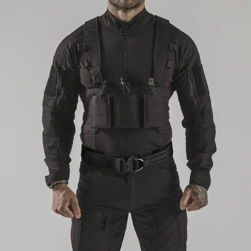 Curtiss® - это гибридное нагрудное устройство с тремя постоянно вшитыми подсумками для системных магазинов HK 308, а также для любого другого магазина .308WIN. Магазины крепятся сверху с помощью эластичных петель-банджи-шнуров. Функциональность нагрудного устройства усиливается боковыми вставками MOLLE PALS, которые позволяют прикреплять дополнительные подсумки, что позволяет настраивать их в соответствии с индивидуальными потребностями. Система крепления также встроена в переднюю часть карманов и в обвязку ремня безопасности, что еще больше повышает конфигурируемость оборудования. Ремень безопасности для переноски был слегка изменен, чтобы лучше распределять нагрузку и повышать комфорт пользователя. Эта модификация увеличивает вместимость снаряжения как по количеству, так и по весу груза, сохраняя при этом максимальный комфорт. Кроме того, в большом внутреннем кармане, закрывающемся на липучку, можно разместить плоские предметы.