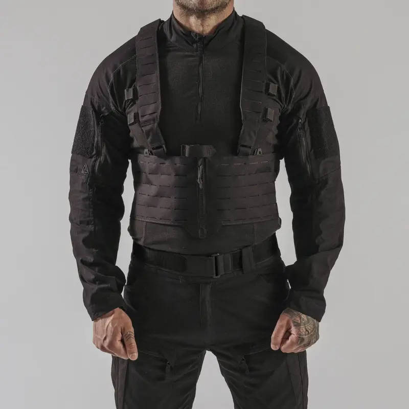 Одно из наших нагрудных приспособлений на молнии, наряду с HURRICANE® и TEMPEST®, нагрудный комплект WARWICK® с застежкой-молнией спереди - самый легкий, плоский и модульный из них. Застежка-молния спереди - идеальная базовая платформа для патрульного комплекта, особенно в сочетании с одним из наших рюкзаков. Это снаряжение изготовлено из фирменного ламината, без каких-либо дополнительных подсумков или патронов, только плоские карманы на каждой панели для карты, фотографии цели и т.д. Вся поверхность снаряжения покрыта модульной системой, совместимой с MOLLE/PALS. Благодаря съемным, полностью модульным плечевым ремням, нагрудный ремень может быть прикреплен непосредственно к одному из наших носителей пластин.