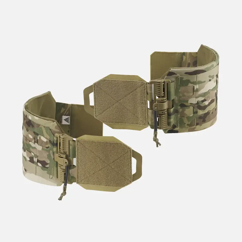Широкий пояс со скелтоном изготовлен из четырехслойного эластичного нейлона и ламината. Ламинат с лазерной резкой на поверхности делает пояс чрезвычайно легким и совместимым с системой MOLLE/PALS. Он подходит для большинства держателей пластин Direct Action®, в том числе для сверхлегких пластин BEARCAT®. Эластичная часть с 4-сторонним расположением служит дополнительным карманом для плоских предметов или для жестких и мягких баллистических панелей. В комплект входят два полиэтиленовых ребра жесткости, которые обеспечивают жесткость, когда пояс не используется с баллистическими вставками. Широкий скелетонизированный пояс застегивается на 80-миллиметровые пряжки ROC®, которые бесшумны, надежны и просты в использовании. Полуэластичная конструкция обеспечивает дополнительную свободу движений.