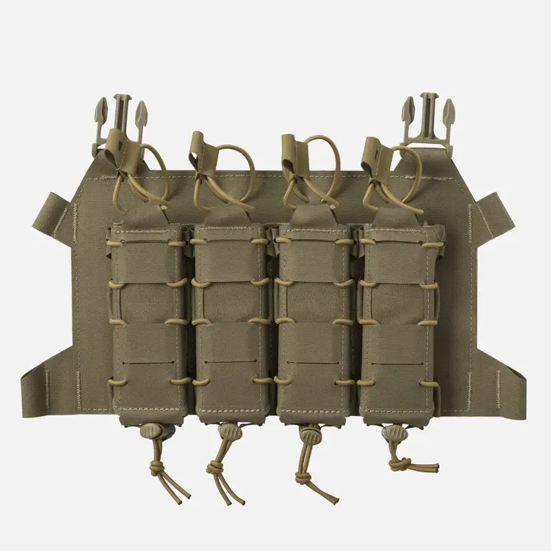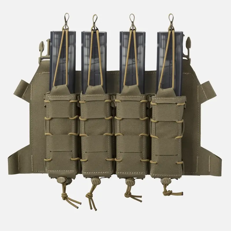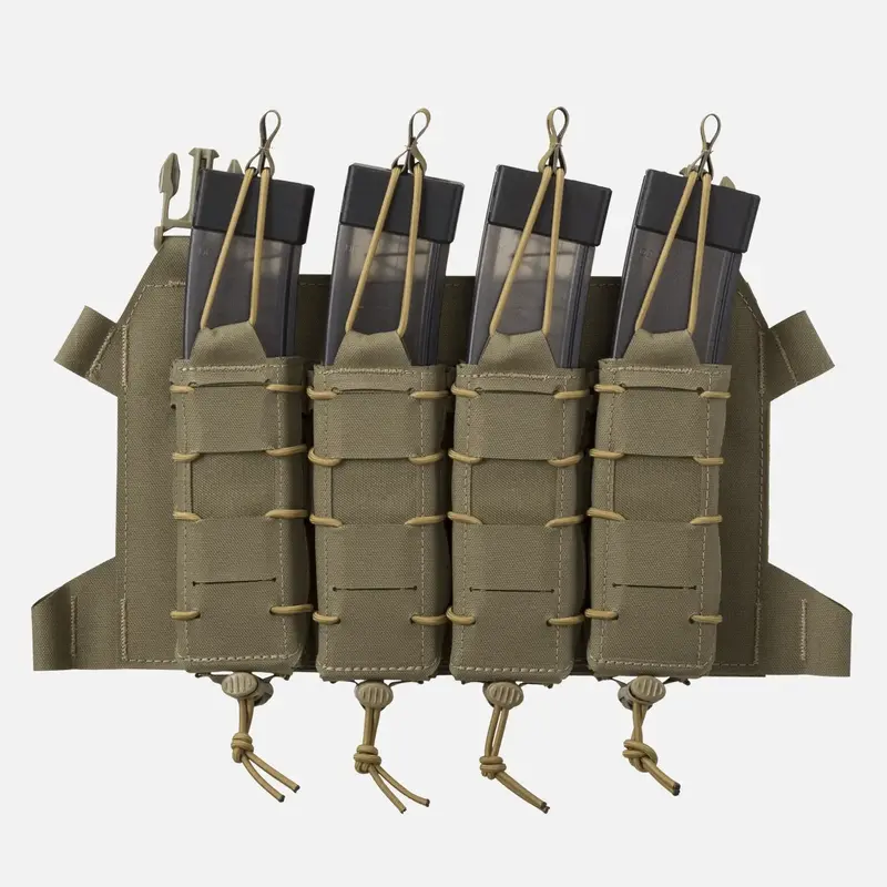 Чрезвычайно легкий скелетированный клапан, предназначенный для переноски четырех магазинов SMG, включая MP5 или даже Scorpion Evo. Оснащен модульной системой лазерной резки, совместимой с MOLLE/PALS. Клапан идеально сочетается с патронником BEARCAT® и системой SPITFIRE®. Магазины крепятся сверху эластичными шнурами с защелками Hypalon®. Клапан крепится к патроннику с помощью двух боковых застежек. Благодаря дополнительному интерфейсу его можно превратить в компактное устройство для переноски на груди.