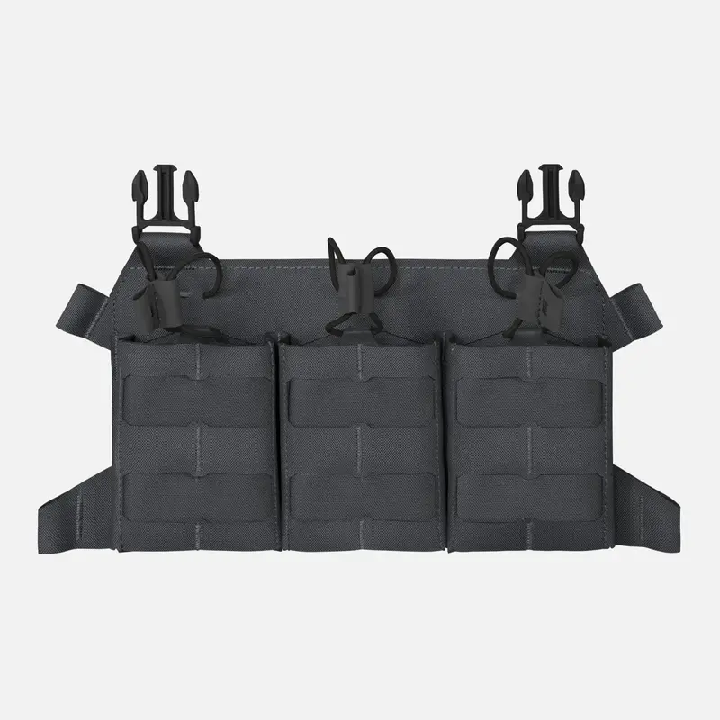 Легкий скелетированный клапан, предназначенный для переноски трех магазинов SR (.308WIN). Покрыт модульной системой лазерной резки, совместимой с MOLLE/PALS. Клапан идеально сочетается с патронником BEARCAT® и системой SPITFIRE®. Магазины крепятся сверху эластичным шнуром с защелками Hypalon®. Благодаря дополнительному интерфейсу его можно превратить в компактное устройство для переноски на груди.