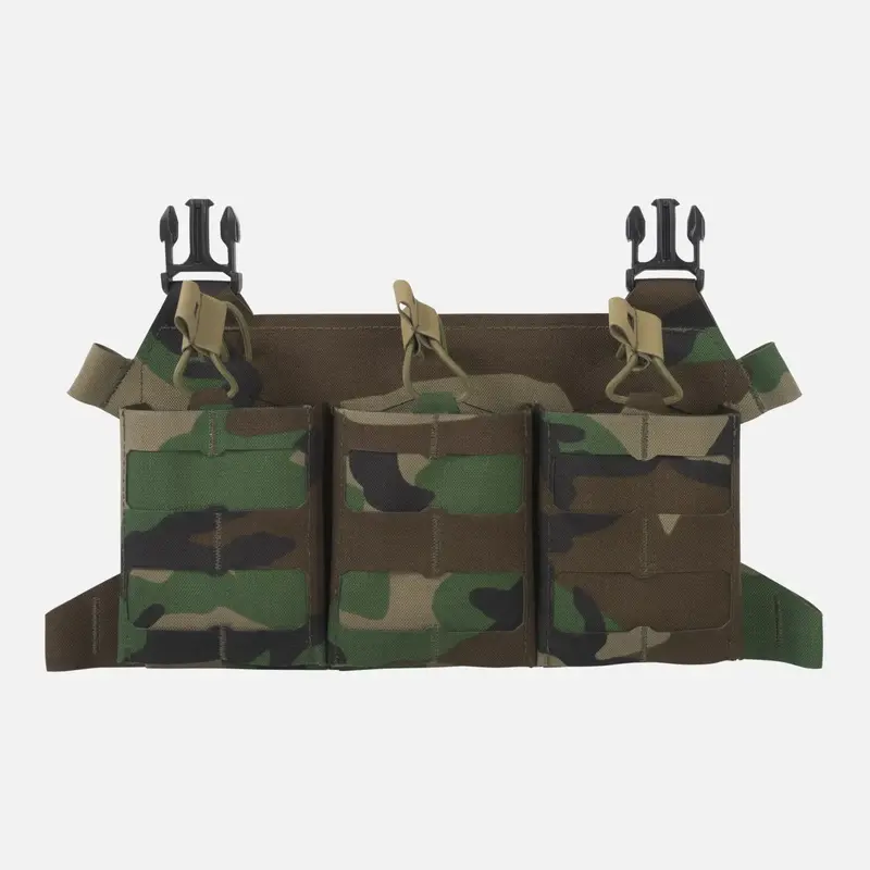 Легкий скелетированный клапан, предназначенный для переноски трех магазинов SR (.308WIN). Покрыт модульной системой лазерной резки, совместимой с MOLLE/PALS. Клапан идеально сочетается с патронником BEARCAT® и системой SPITFIRE®. Магазины крепятся сверху эластичным шнуром с защелками Hypalon®. Благодаря дополнительному интерфейсу его можно превратить в компактное устройство для переноски на груди.