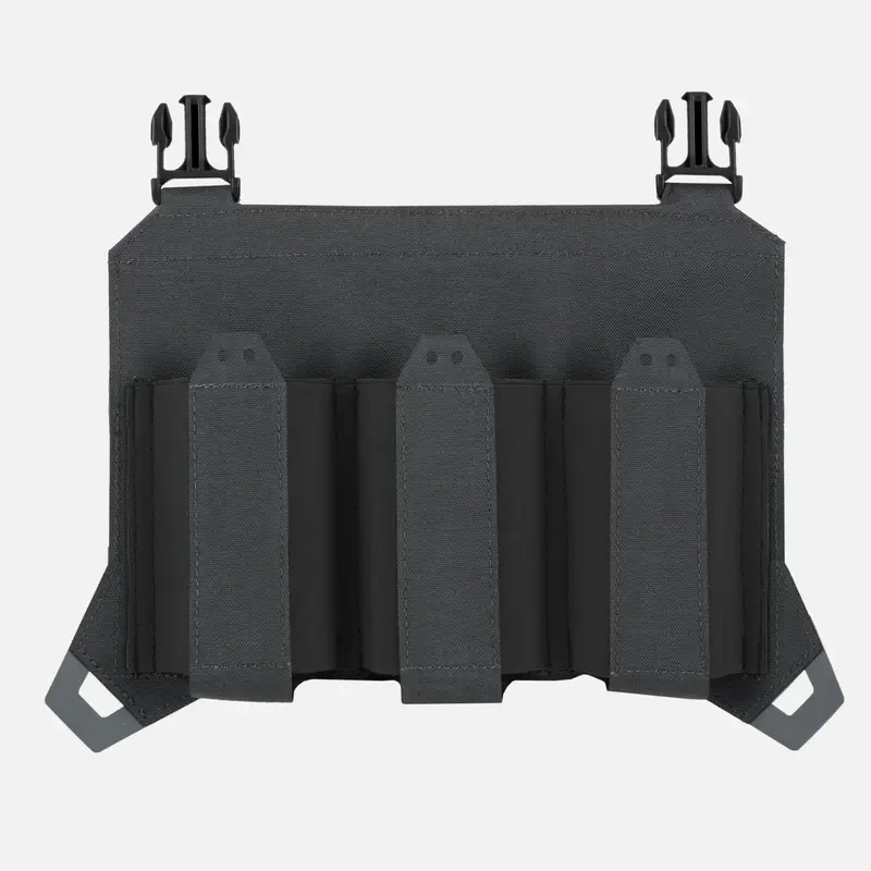 Изготовлен из фирменного ламината и широкой эластичной лентыПодходит для трех магазинов AR/ AKКрепежные точки для крепления шнура bungie в качестве дополнительной защитыКрепится с помощью крючка&прорези для петель или с помощью прилагаемых пряжекДополнительные съемники для легкого открывания клапанаСовместимы как с SPITFIRE MK II, так и с классическим SPITFIRE, а также с держателями пластин HELLCAT