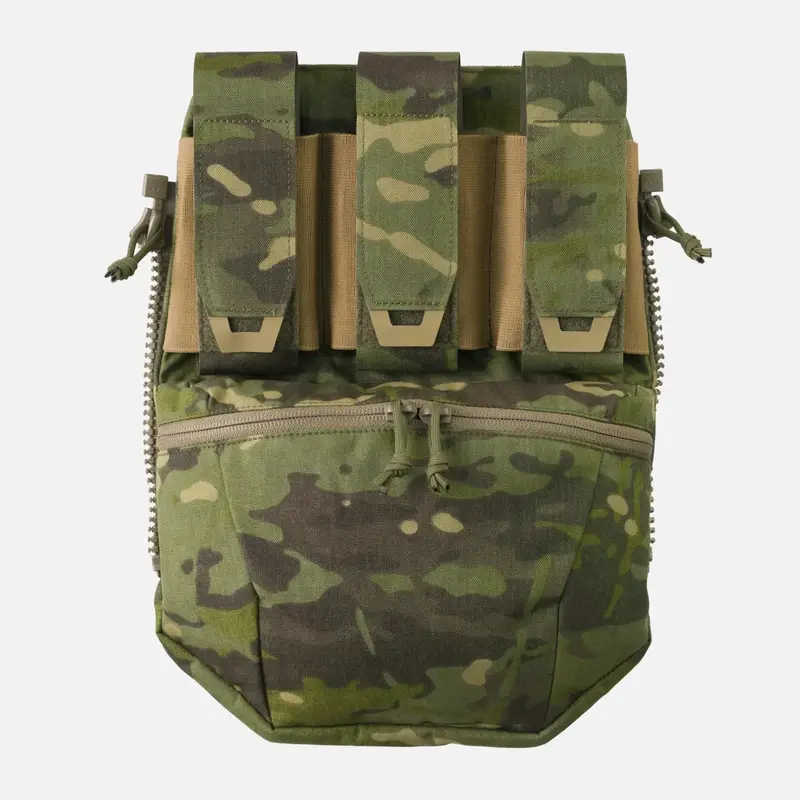 Изготовлен из фирменного ламинатаЗадняя панель держателя пластин SPITFIRE® застегивается на молнию, Имеет три подсумка для светошумовых гранат и запасных магазинов,Большой велюровый-грузовая сумка на подкладке,Плоский карман на липучке®, закрывающийся на всю высоту панели под внешними карманами.Описание