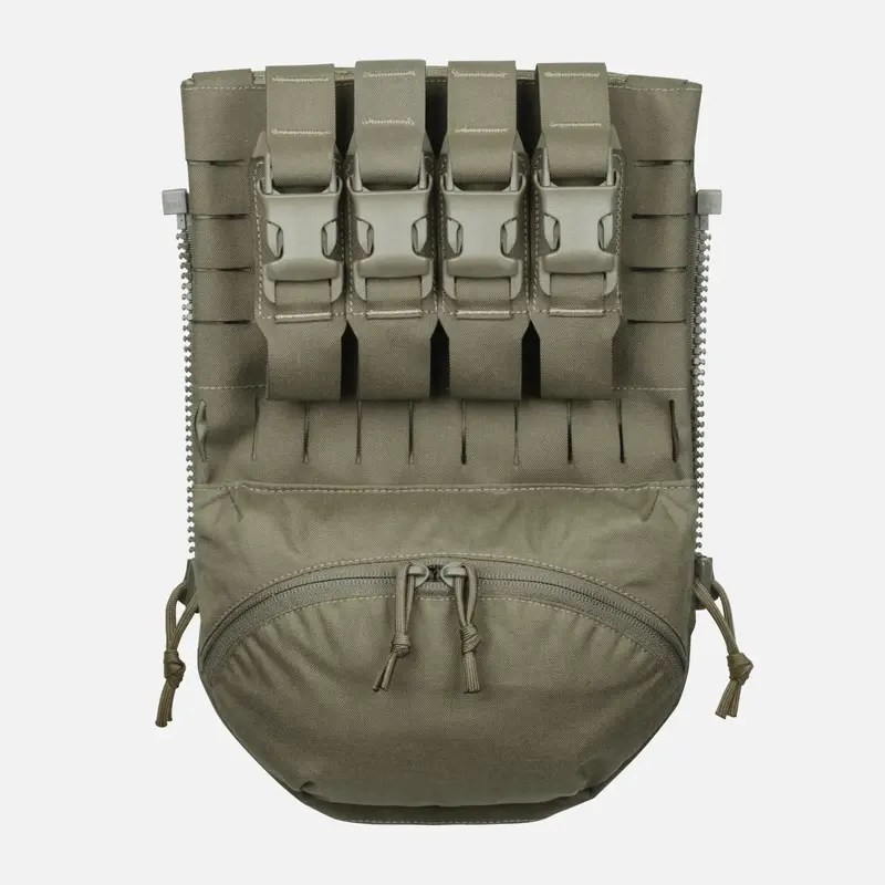 В верхней секции расположены четыре подсумка для светошумовых гранат, закрепленных по центру быстросъемными пряжками, со съемными клапанами для установки с открытым верхом. Боковые колонки MOLLE/PALS и один горизонтальный ряд MOLLE под подсумками позволяют прикрепить подсумок с зарядами или другие предметы первой необходимости.
