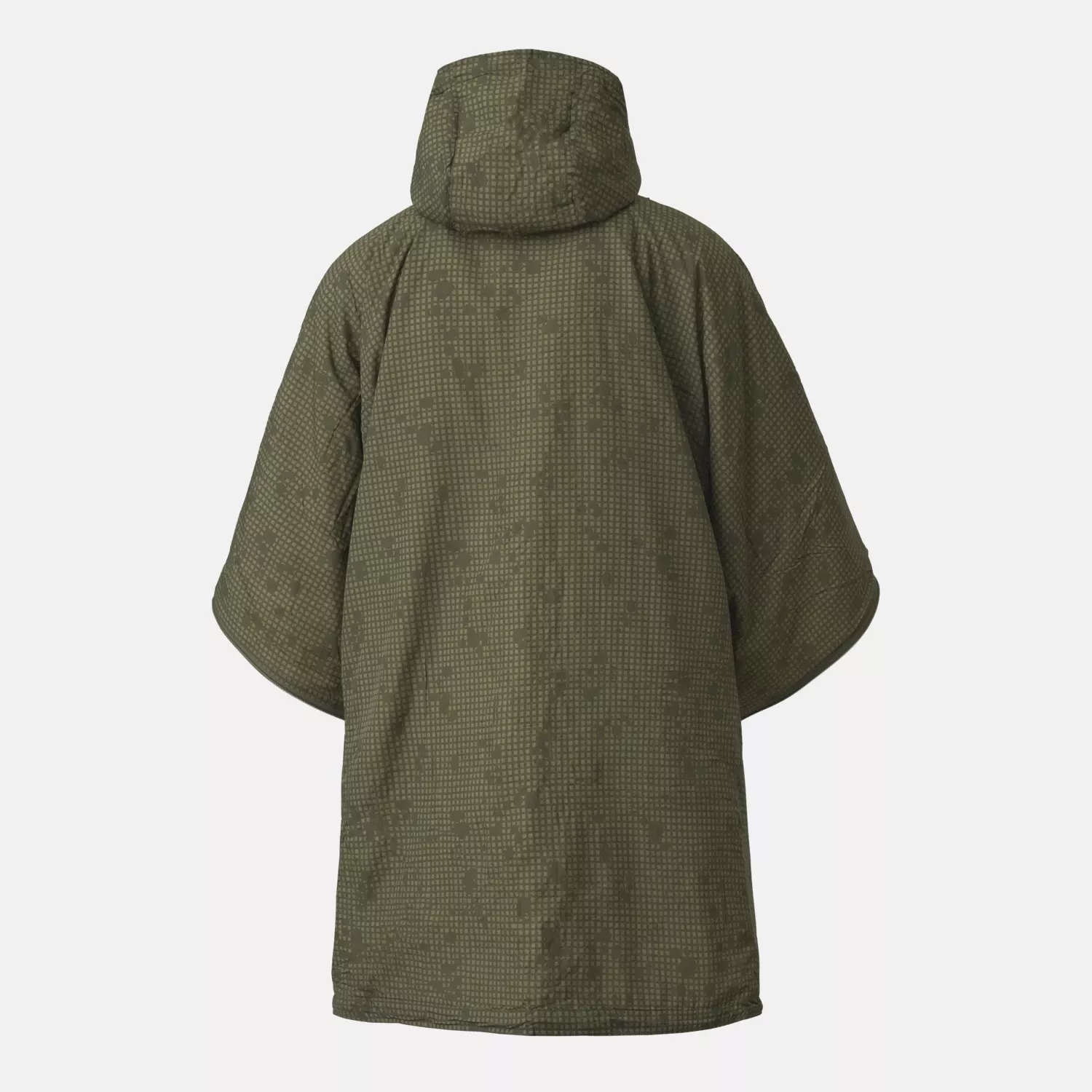 В отличие от пуха, утеплитель из синтетического волокна сохраняет тепло даже во влажном состоянии и не сбивается в комки. Пончо можно стирать в стиральной машине. Утеплитель легкий, эффективный, дышащий и компактный.