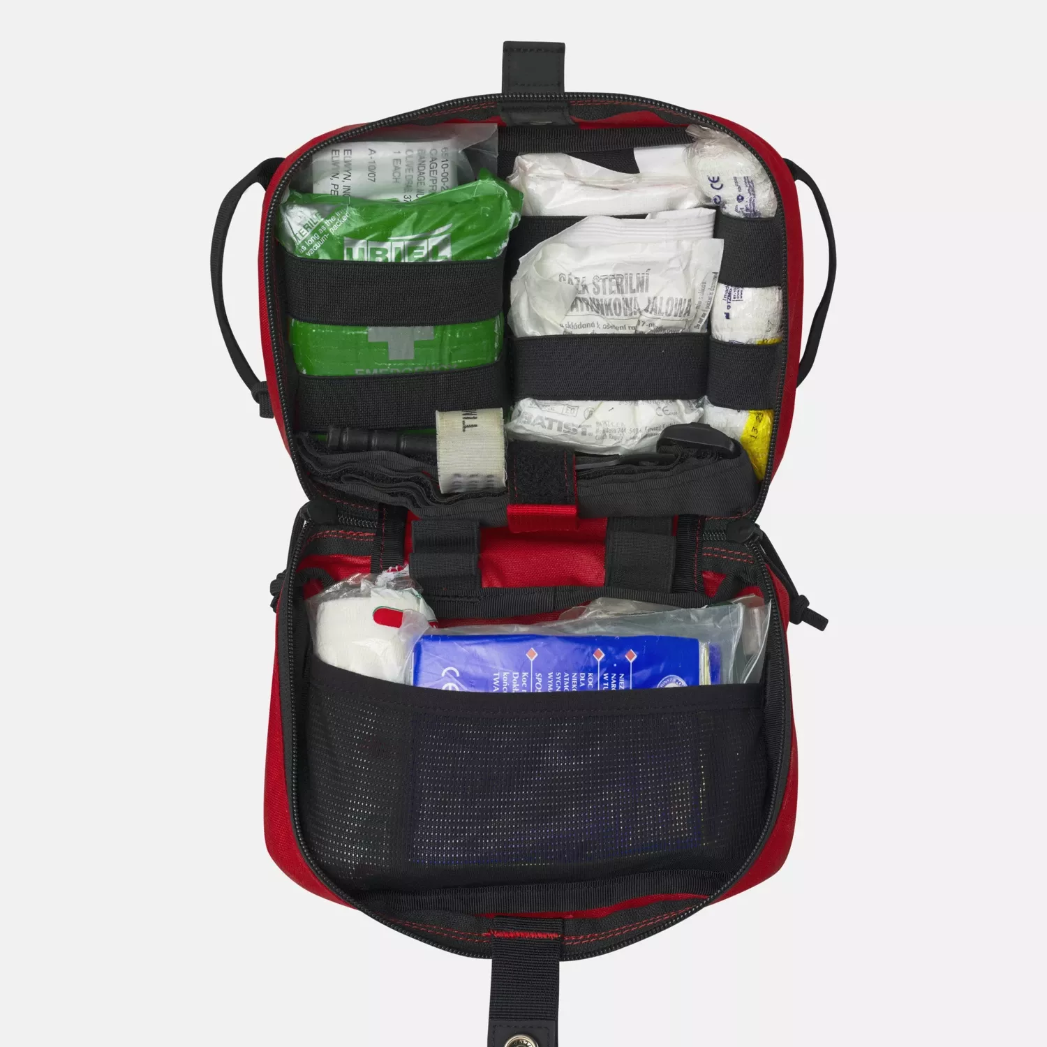 Быстрый доступ к аптечке может иметь решающее значение для выживания. Автомобильная аптечка может быть прикреплена к спинке подголовника сиденья и использована одним резким движением при необходимости. Для удобства доступа аптечка имеет контрастные ручки с обеих сторон. Снаружи автомобильная аптечка имеет плоский карман на молнии для перчаток, светоотражающего жилета и т. д. Основной карман расстегивается, позволяя сложить аптечку. Внутри имеются эластичные шнуры, карманы и ручки, позволяющие свободно прикреплять оборудование аптечки.