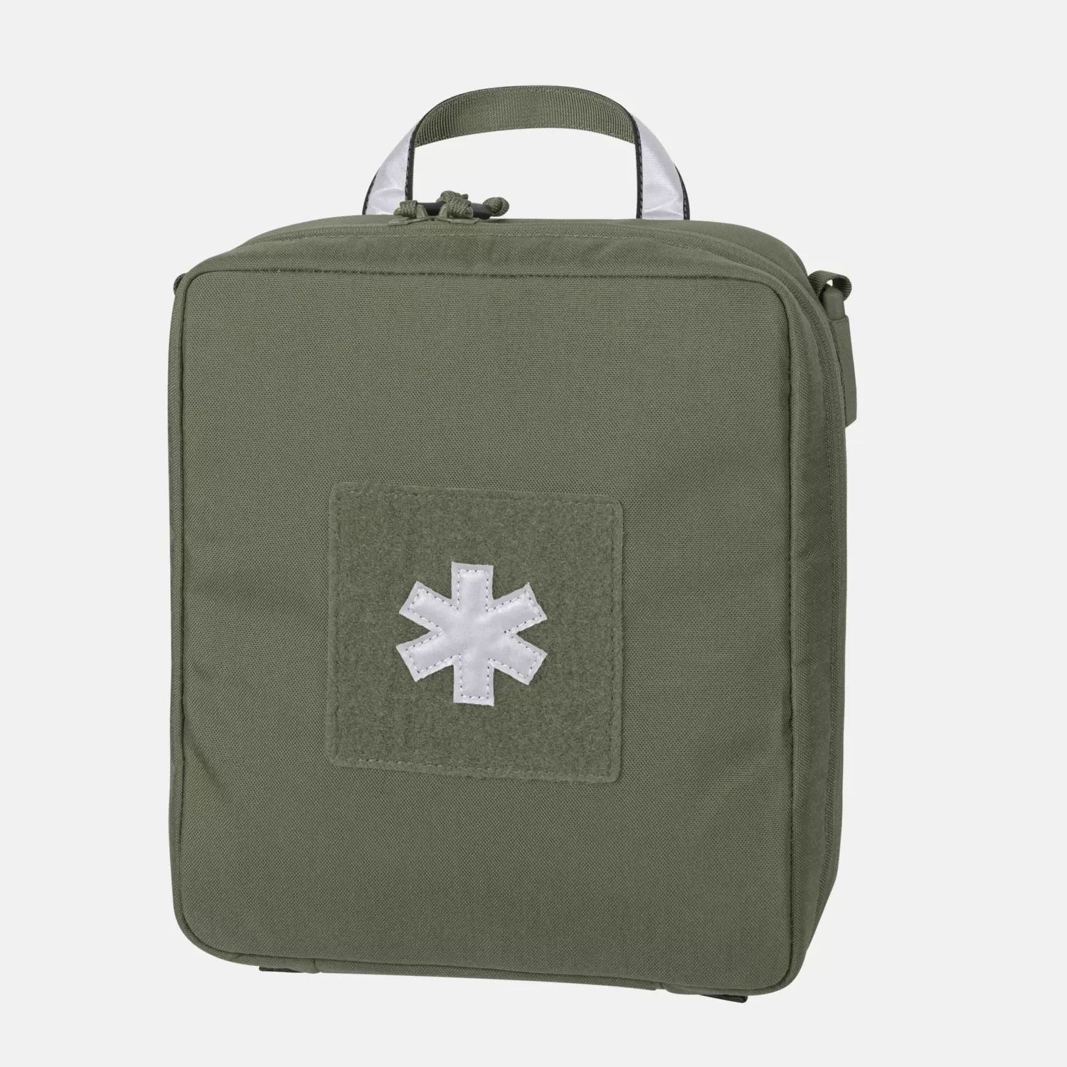 Этот медицинский органайзер полезен как в качестве аварийного комплекта в автомобиле, так и в качестве портативной аптечки первой помощи. Ремешок позволяет носить его на плече. После извлечения комплект можно убрать в отделение рюкзака или карман на молнии. Автомобильная аптечка-сумка также удобна для тех, кто отправляется на стрельбище, поскольку имеет усиленное дно, подходящее для переноски окклюзионных повязок. Комплект разработан таким образом, чтобы идеально помещаться в наши стрелковые сумки Helikon-Tex Rangemaster.