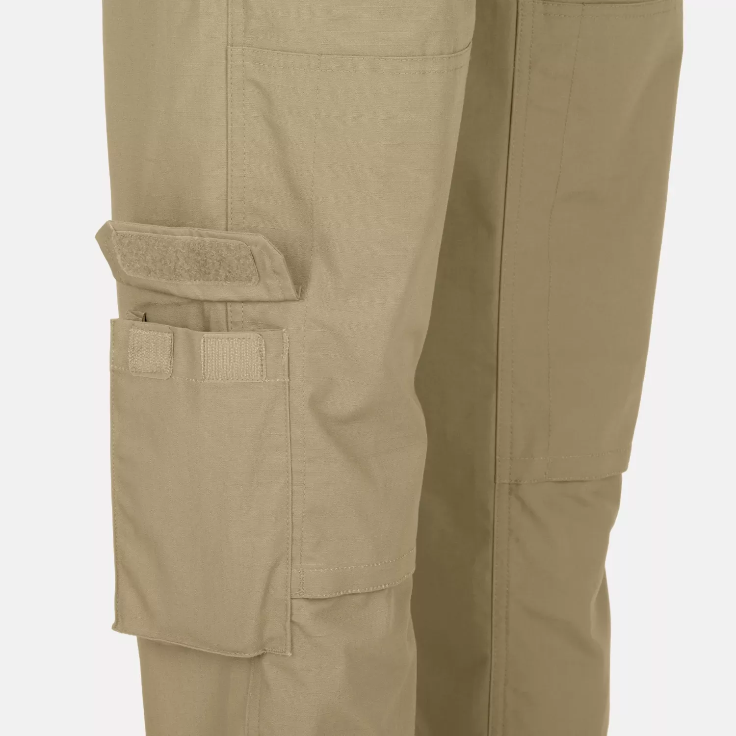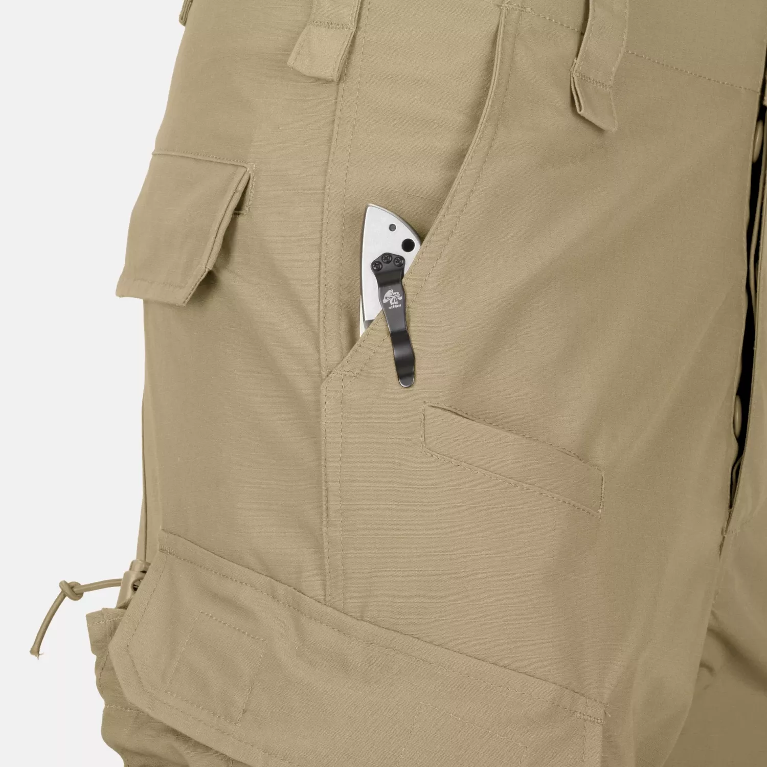 Брюки CPU включают в себя множество функциональных особенностей, повышающих комфорт. Благодаря регулировке талии и шнуркам, вшитым в штанины, брюки можно подогнать по фигуре. Десять карманов, расположенных на бедрах, ягодицах и икрах, обеспечивают прямой доступ к повседневному снаряжению. В них можно удобно разместить такие предметы, как нож, фонарик, многофункциональный инструмент, аптечка или запасные магазины. Карабины или D-образные кольца можно прикрепить к дополнительным петлям, расположенным под передними поясными петлями.