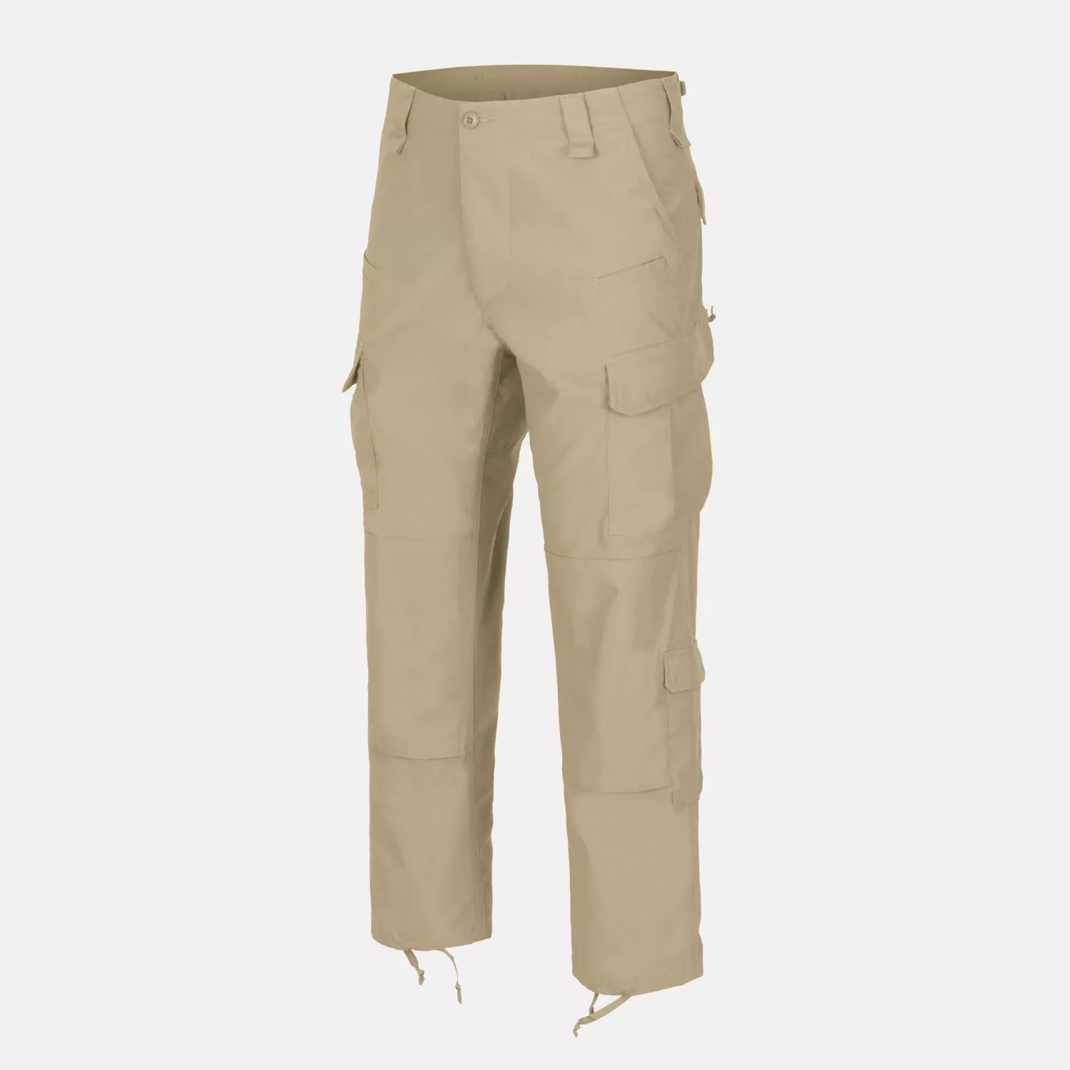 Брюки CPU включают в себя множество функциональных особенностей, повышающих комфорт. Благодаря регулировке талии и шнуркам, вшитым в штанины, брюки можно подогнать по фигуре. Десять карманов, расположенных на бедрах, ягодицах и икрах, обеспечивают прямой доступ к повседневному снаряжению. В них можно удобно разместить такие предметы, как нож, фонарик, многофункциональный инструмент, аптечка или запасные магазины. Карабины или D-образные кольца можно прикрепить к дополнительным петлям, расположенным под передними поясными петлями.