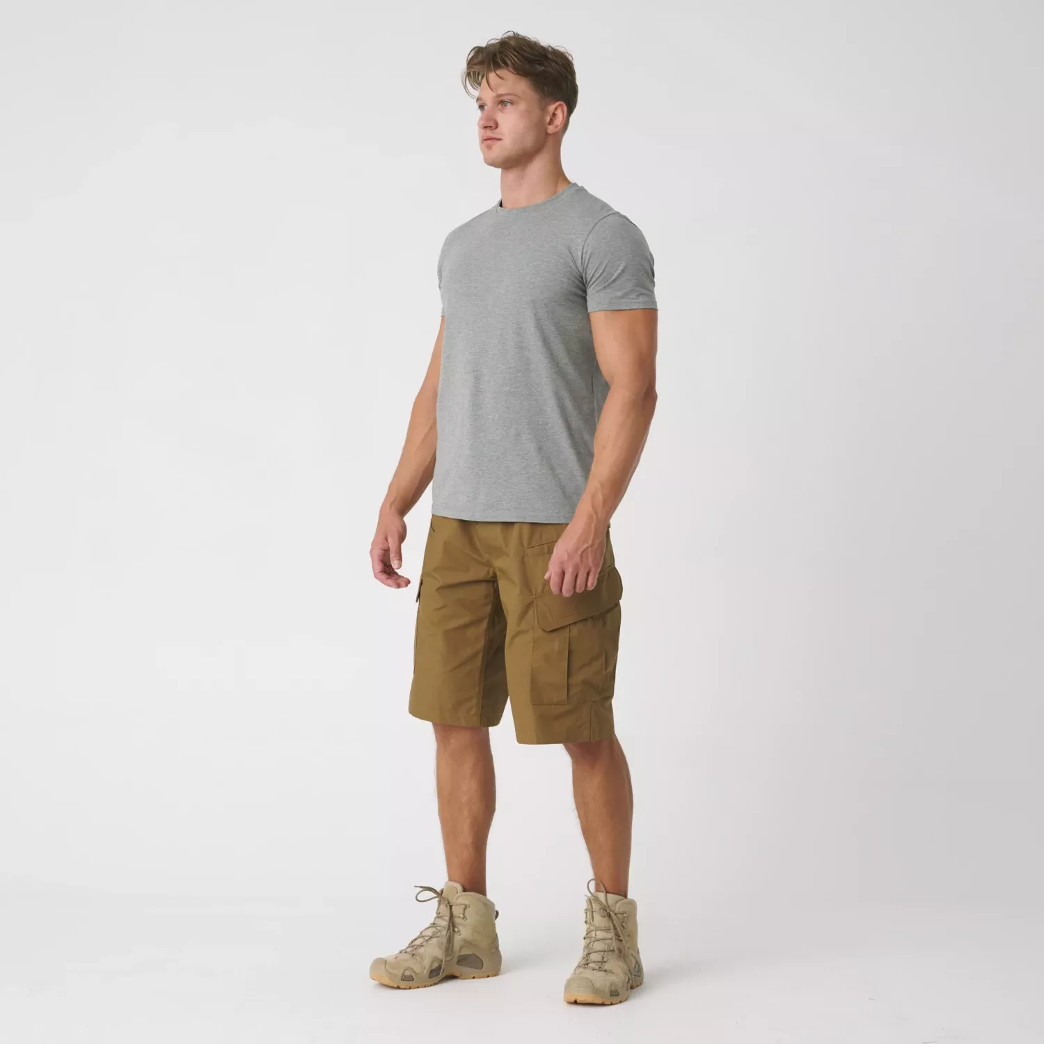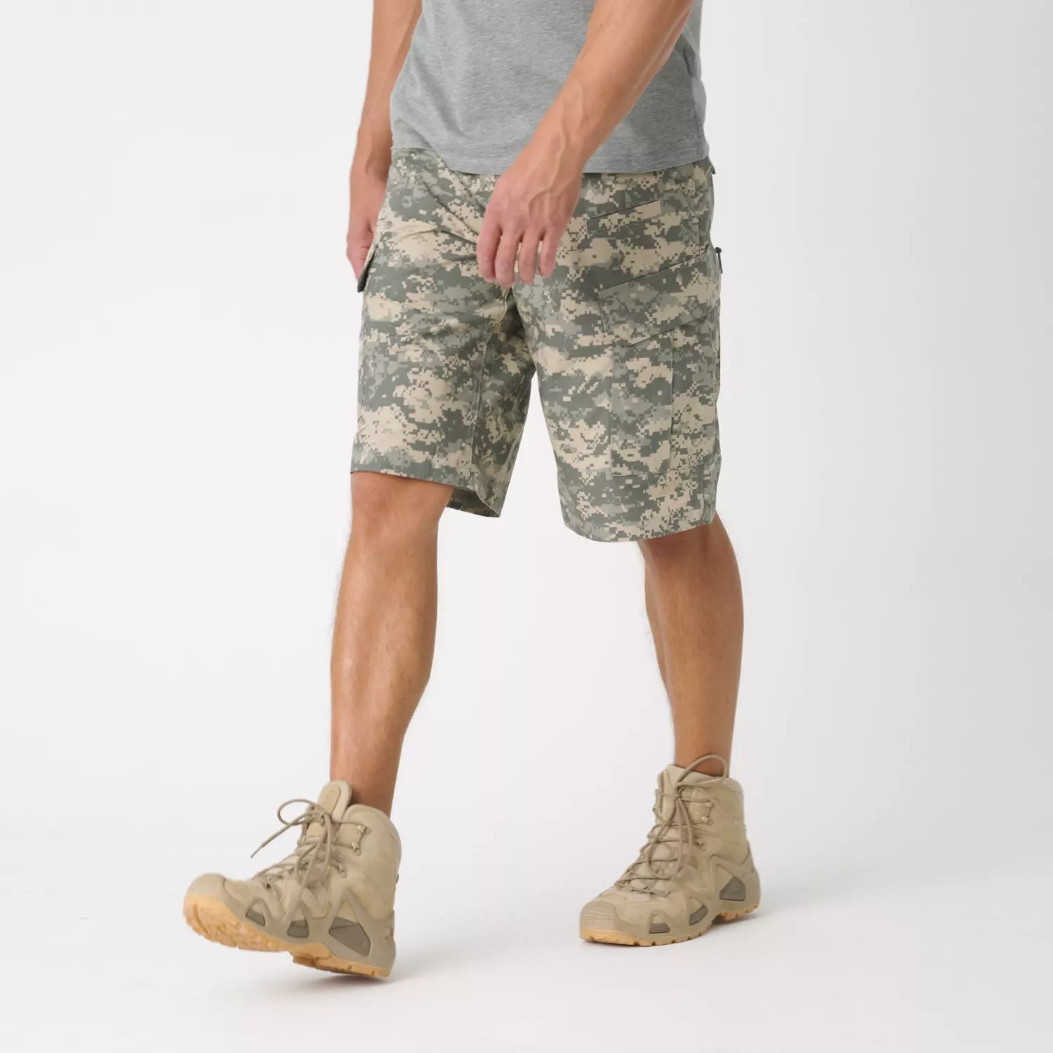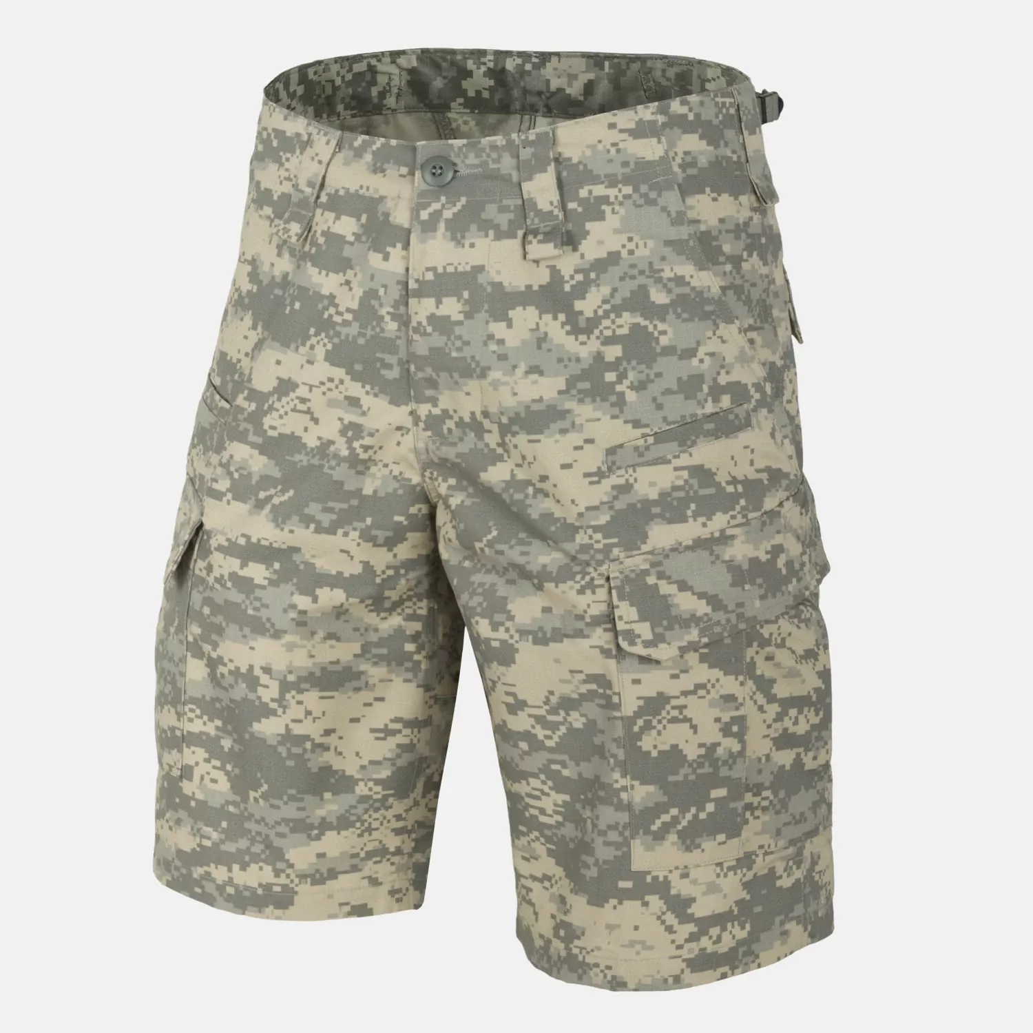 Восемь практичных карманов в этих военных шортах позволяют удобно носить с собой повседневное снаряжение. Два классических набедренных кармана вмещают нож или фонарик. Два небольших передних кармана предназначены для мелких предметов снаряжения, таких как смартфон. Два набедренных кармана с застежкой на липучке, пуговицах и шнурке могут служить подсумками для пустых магазинов. Дополнительные петли для карабинов пришиты под передними петлями для ремня.