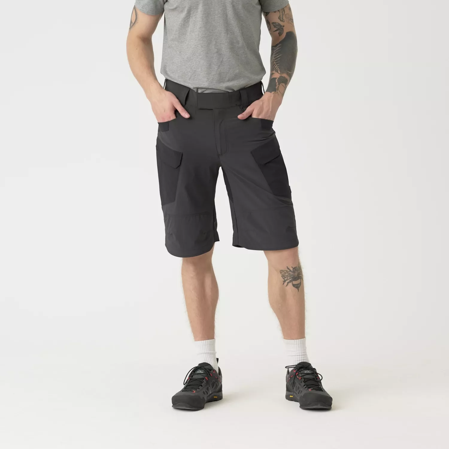 В десять просторных и оптимально расположенных карманов поместится все необходимое снаряжение. Трекинговые шорты имеют два классических набедренных кармана с усиленными краями, четыре набедренных кармана, включая два накладных кармана на молнии, и четыре задних кармана. Благодаря регулируемой талии с крючком и... Благодаря петлям, пользователи могут подогнать шорты для активного отдыха по своей фигуре.