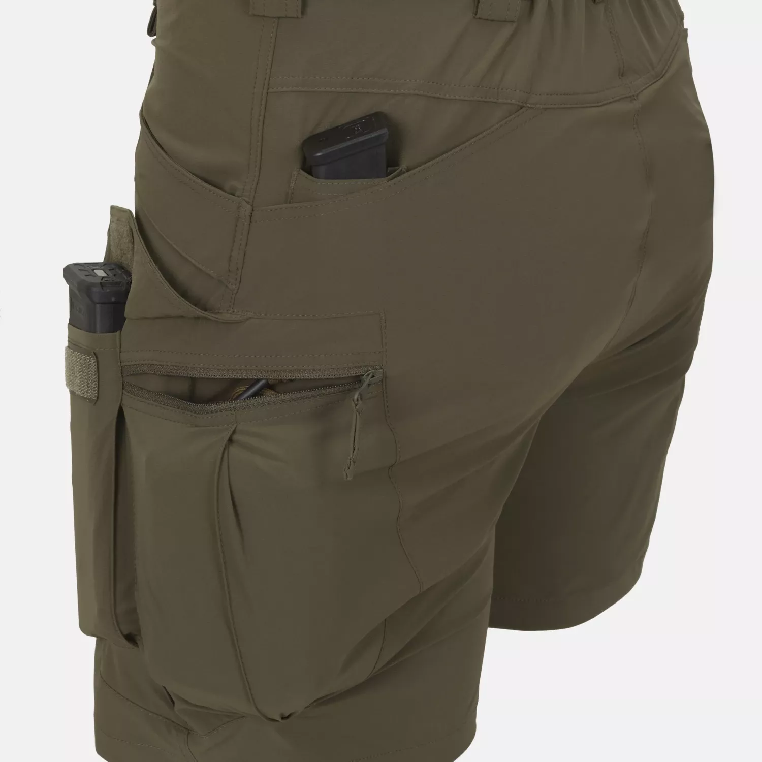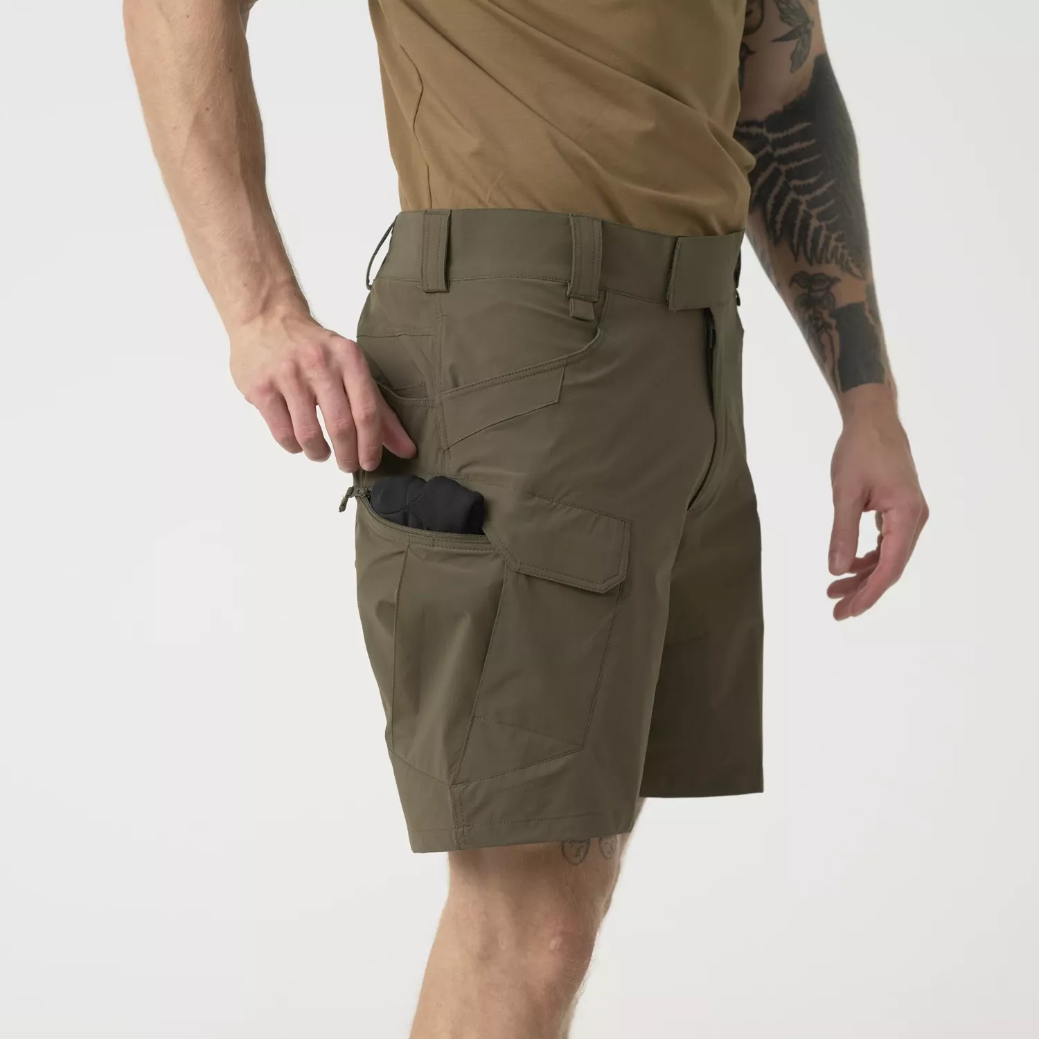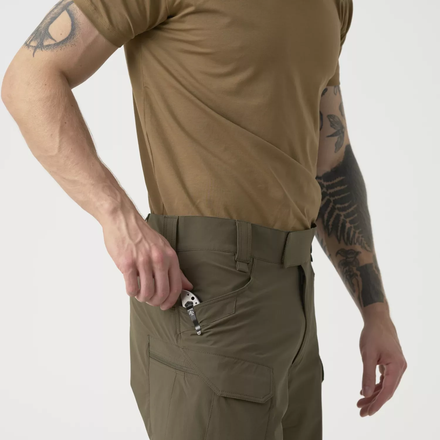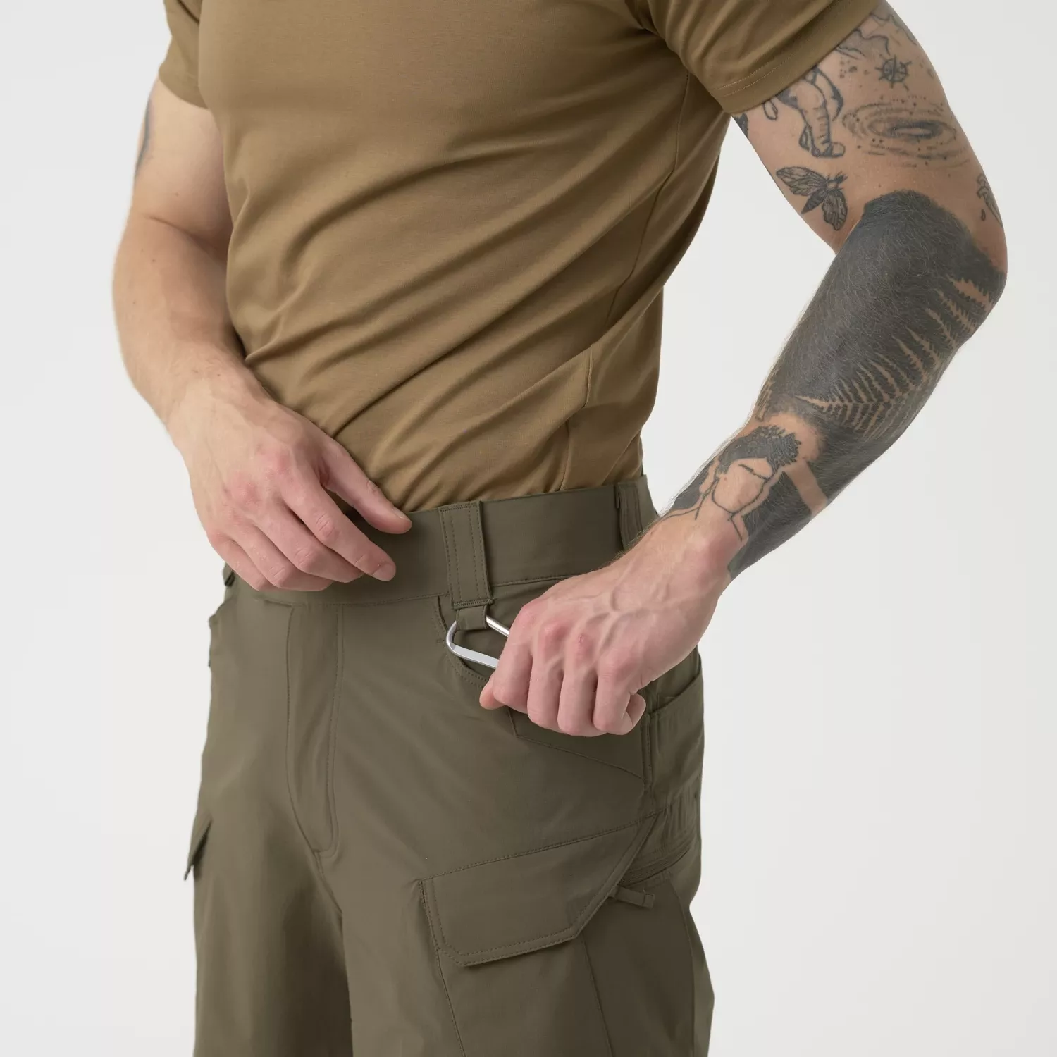 Шорты OTS Ultra предлагают ту же функциональность, что и классические тактические брюки, но с более длинными штанинами. Восемь удобно расположенных карманов обеспечивают достаточно места для всего снаряжения EDC. Есть четыре передних кармана: два классических набедренных кармана с усилением для предотвращения износа от зажимов для ножей и два, закрывающихся на липучку. Кроме того, шорты в стиле милитари имеют два накладных кармана на молнии на бедрах и два открытых задних кармана.