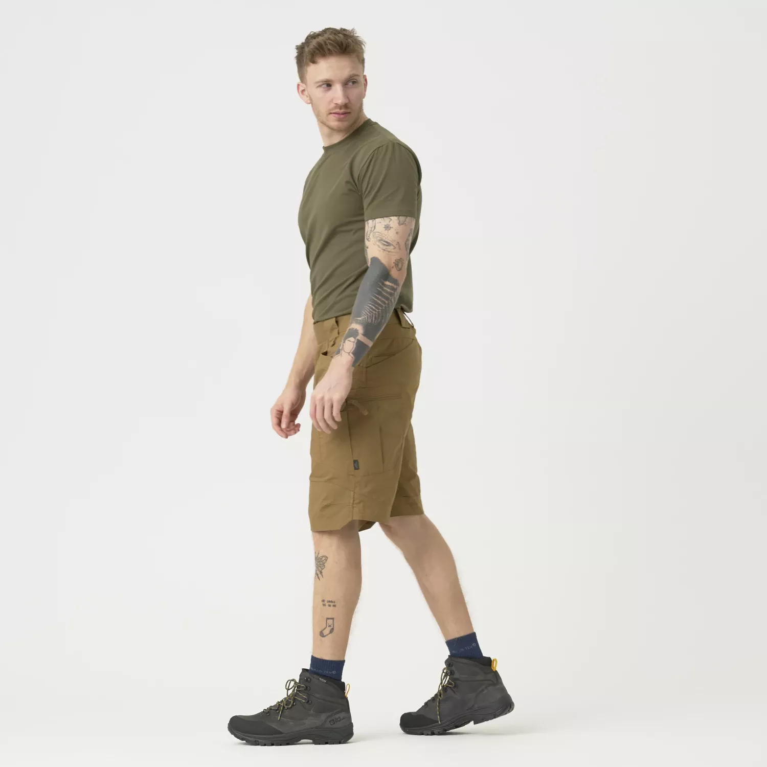 Шорты UTS 11″ (Urban Tactical Shorts) — идеальное решение для летних дней. Укорачивание штанин не повлияло на их функциональность — тактические шорты позволяют легко носить с собой основное снаряжение в шести карманах разных размеров. Шорты UTS 11 дюймов обеспечивают размещение снаряжения в области бедер и талии. Передние карманы усилены, а застежка на липучке позволяет надежно хранить различные предметы. Карманы-карго на молнии, расположенные на бедрах, вмещают более крупное снаряжение. В них можно хранить не только повседневные вещи, такие как кошельки или телефоны, но и магазины для винтовки AR15. Большие петли для ремня подходят для широких ремней.