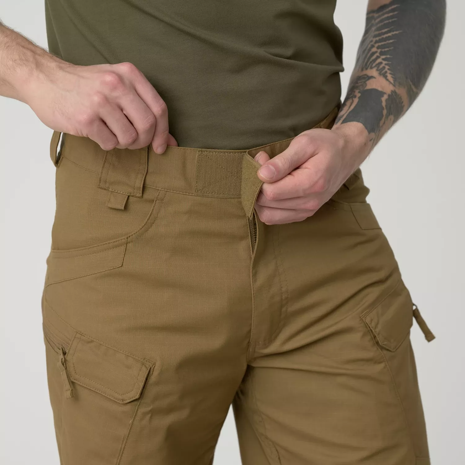 Десять стратегически расположенных карманов облегчают переноску и обеспечивают прямой доступ к необходимому снаряжению. Передние карманы усилены дополнительным слоем материала для защиты от истирания от зажимов для ножей. Под ними расположены набедренные карманы на липучках, в которые можно положить, например, мобильный телефон. Боковые карманы застегиваются на молнию, чтобы вещи не выпадали во время быстрого движения. Шорты UTS 8.5'' можно отрегулировать по фигуре благодаря системе регулировки талии. Широкие поясные петли (две из которых включают дополнительные петли для D-образных колец) позволяют прикрепить военный ремень шириной до 45 мм.