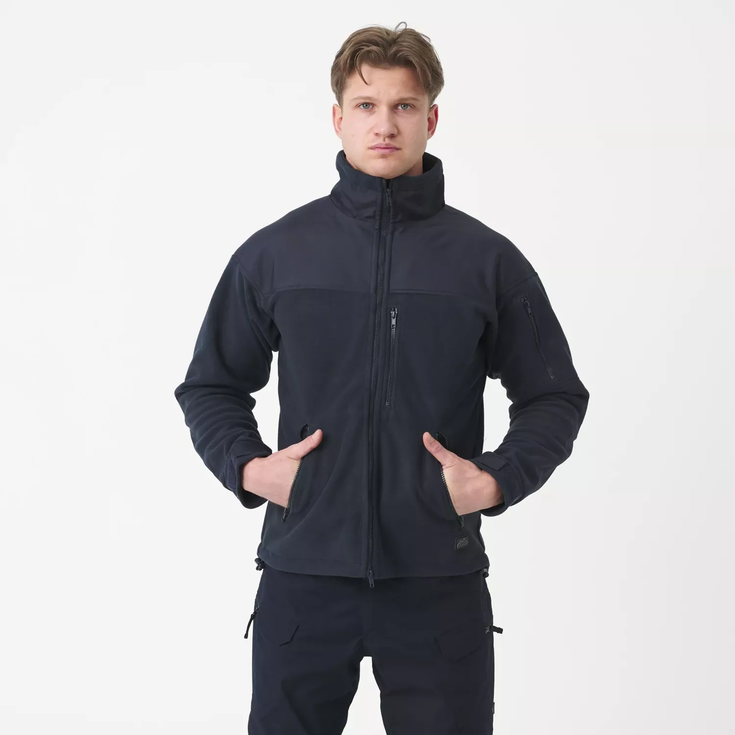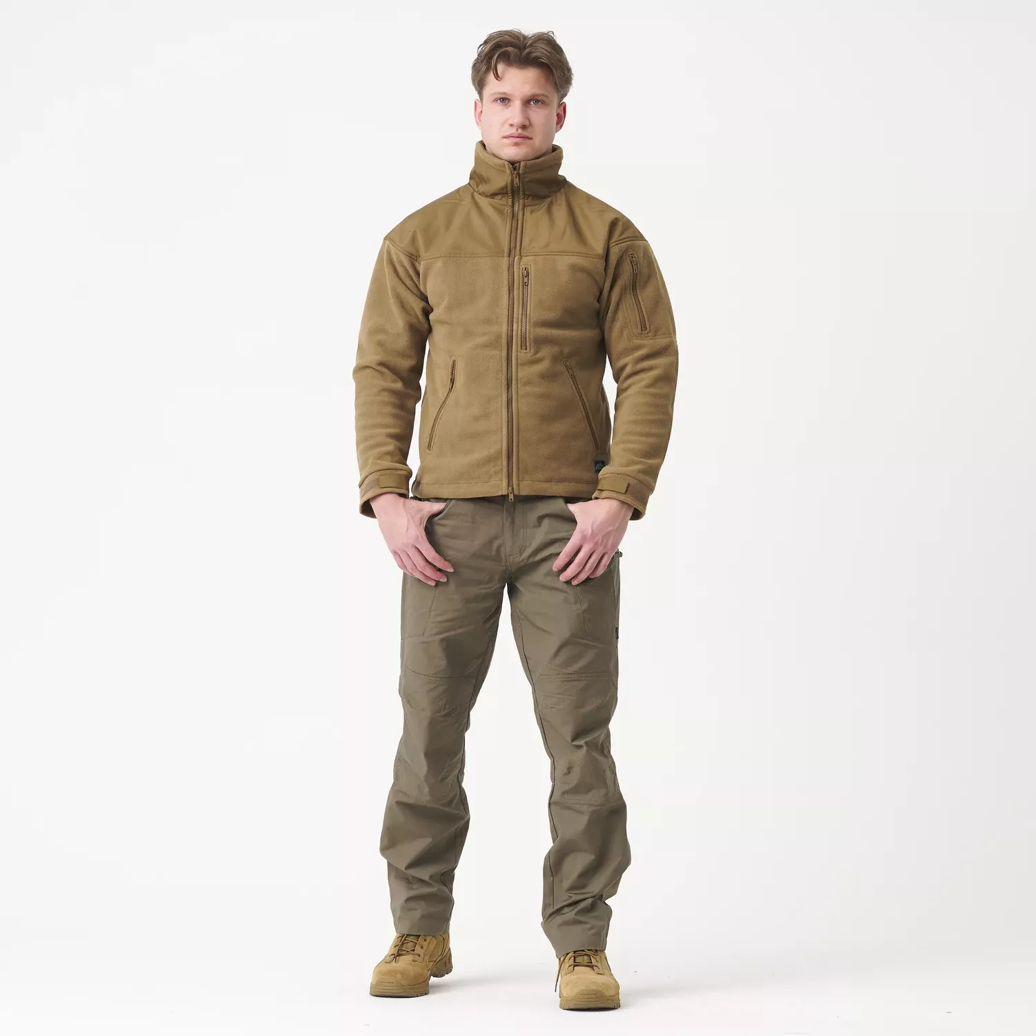 Конструкция куртки усилена в местах, подверженных истиранию, таких как плечи и локти, вставками из Cordura, что повышает ее износостойкость. Практичные элементы, такие как скрытый капюшон в воротнике, регулируемые манжеты на липучках и молнии под мышками, повышают комфорт и адаптацию к различным погодным условиям. Кроме того, флисовая куртка имеет четыре кармана на молнии YKK, включая один на груди с отверстием для кабеля наушников, что повышает функциональность куртки. Куртка застегивается на двухстороннюю термостойкую молнию YKK. Специальная уплотнительная лента защищает от сквозняков.