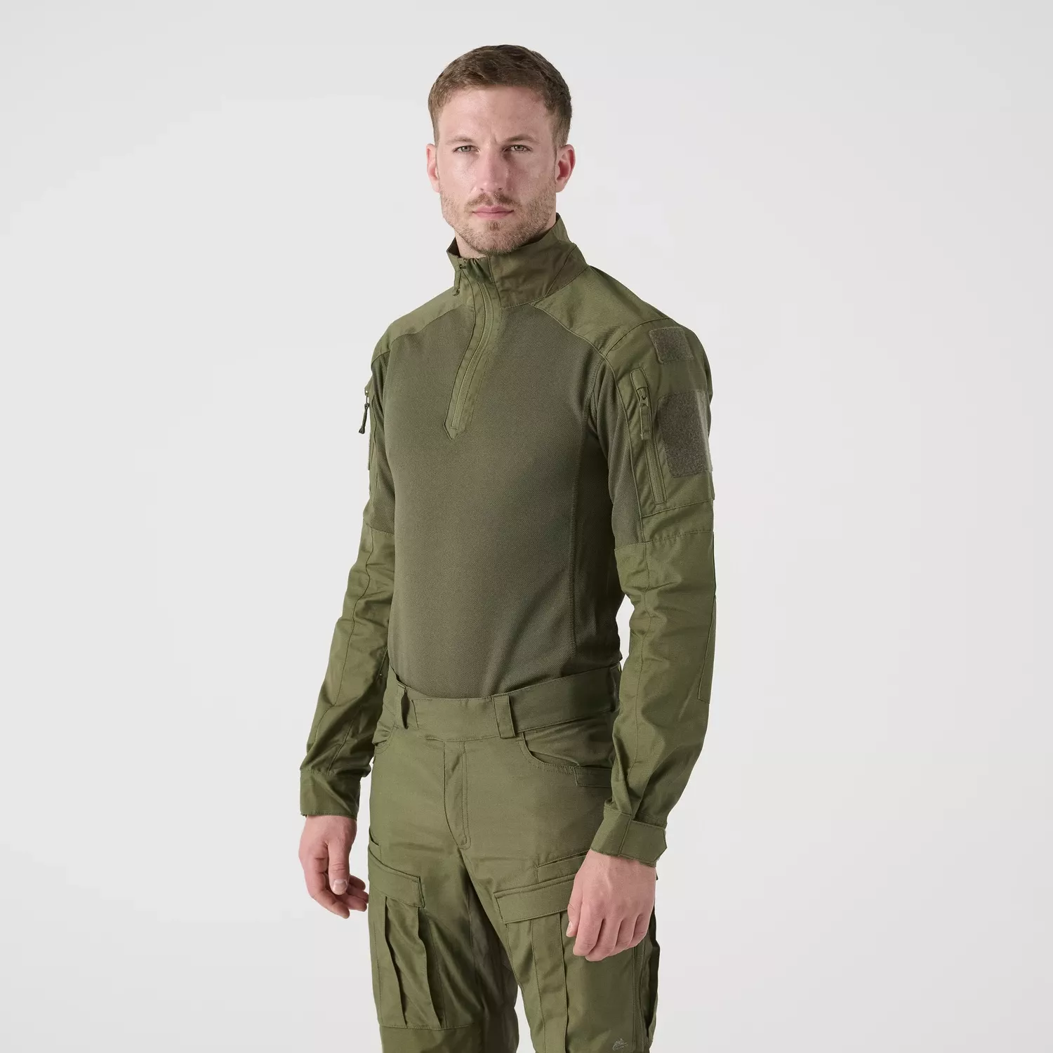 Практичные карманы на молнии YKK расположены на плечах, что позволяет безопасно хранить мелкие предметы, такие как GPS-навигаторы или карты.Двойные застежки-липучки на плечах позволяют легко персонализировать рубашку, добавив эмблемы или нашивки, такие как национальный флаг или знаки различия подразделения. Высокий воротник на молнии обеспечивает дополнительную защиту, а регулируемые манжеты на липучках позволяют идеально подогнать рубашку по фигуре. Кроме того,усиления вокруг локтей обеспечивают защиту от истирания.
