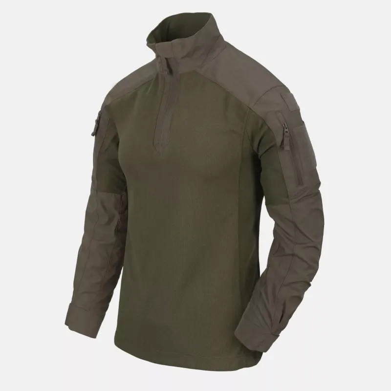 Практичные карманы на молнии YKK расположены на плечах, что позволяет безопасно хранить мелкие предметы, такие как GPS-навигаторы или карты.Двойные застежки-липучки на плечах позволяют легко персонализировать рубашку, добавив эмблемы или нашивки, такие как национальный флаг или знаки различия подразделения. Высокий воротник на молнии обеспечивает дополнительную защиту, а регулируемые манжеты на липучках позволяют идеально подогнать рубашку по фигуре. Кроме того,усиления вокруг локтей обеспечивают защиту от истирания.