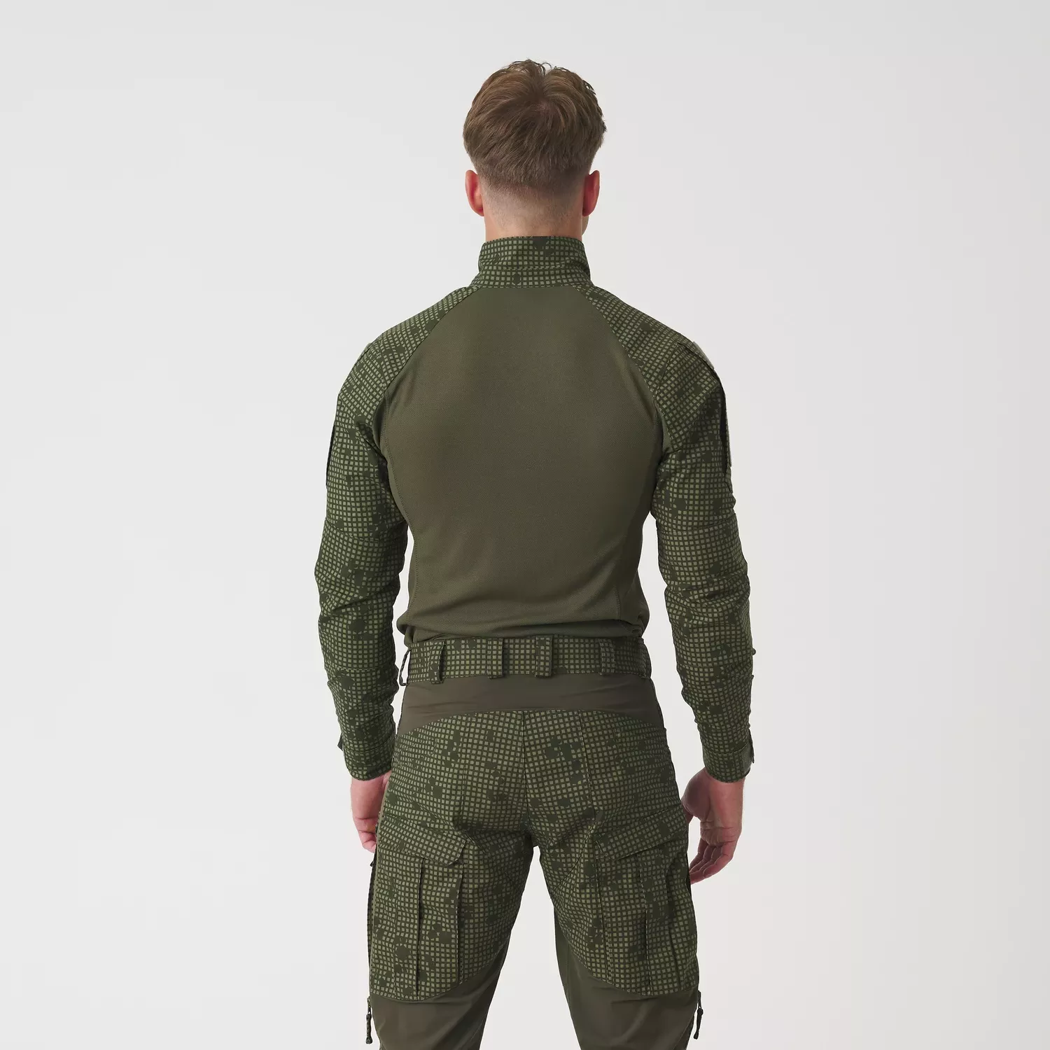 Практичные карманы на молнии YKK расположены на плечах, что позволяет безопасно хранить мелкие предметы, такие как GPS-навигаторы или карты.Двойные застежки-липучки на плечах позволяют легко персонализировать рубашку, добавив эмблемы или нашивки, такие как национальный флаг или знаки различия подразделения. Высокий воротник на молнии обеспечивает дополнительную защиту, а регулируемые манжеты на липучках позволяют идеально подогнать рубашку по фигуре. Кроме того,усиления вокруг локтей обеспечивают защиту от истирания.