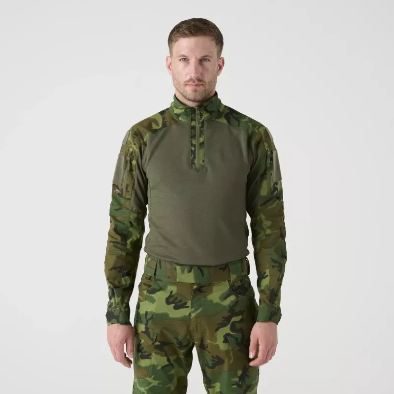 Практичные карманы на молнии YKK расположены на плечах, что позволяет безопасно хранить мелкие предметы, такие как GPS-навигаторы или карты.Двойные застежки-липучки на плечах позволяют легко персонализировать рубашку, добавив эмблемы или нашивки, такие как национальный флаг или знаки различия подразделения. Высокий воротник на молнии обеспечивает дополнительную защиту, а регулируемые манжеты на липучках позволяют идеально подогнать рубашку по фигуре. Кроме того,усиления вокруг локтей обеспечивают защиту от истирания.