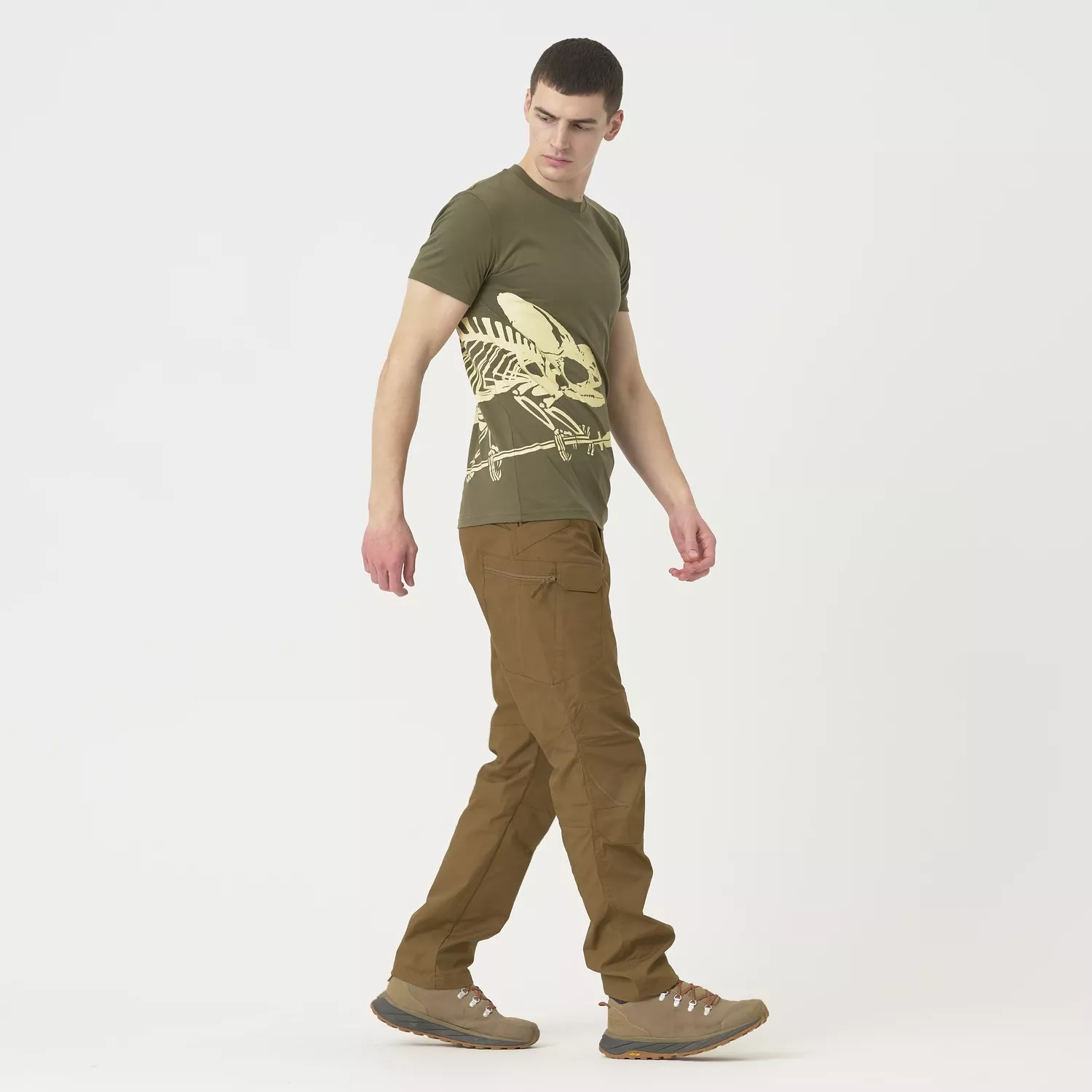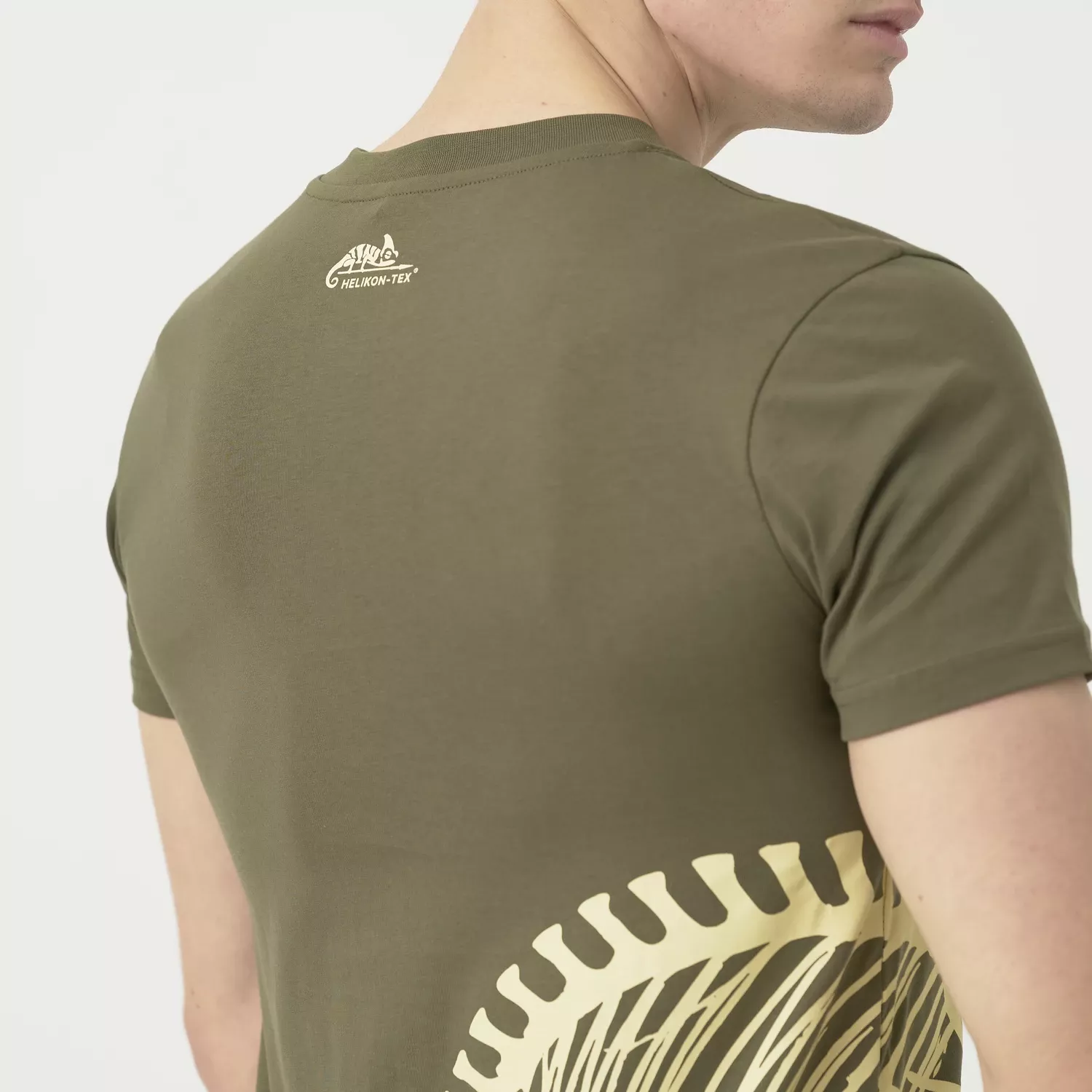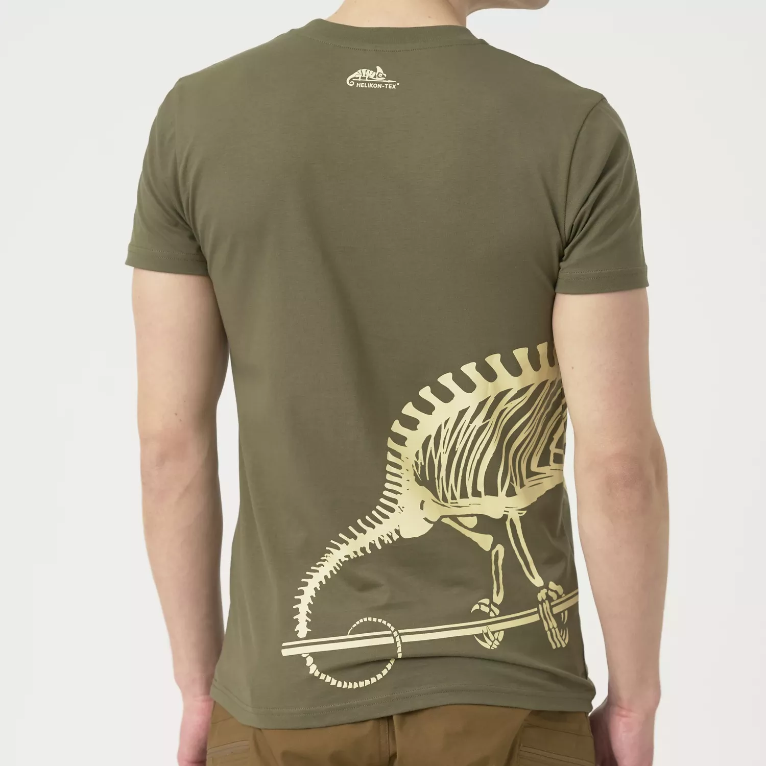 Футболка с принтом скелета хамелеона обязательно найдет место во многих гардеробах. Классический крой и темный цвет делают ее подходящей для повседневной носки — будь то активный отдых на природе или прогулка по городу. Уникальный характер изделия подчеркивается современным, прочным принтом, который выдержит многократную стирку. Рубашка изготовлена из дышащего, мягкого хлопка, обеспечивающего комфорт и свободу движений в любой ситуации.