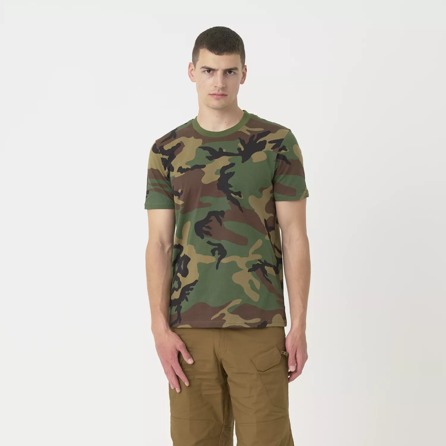 Классическая хлопковая футболка свободного кроя. Характерная форма футболок развилась в начале 20-го века из предшествующего нижнего белья (известного как комбинезон). После Второй мировой войны хлопковые футболки в форме буквы Т стали очень популярны, отчасти благодаря Марлону Брандо и Джеймсу Дину, которые носили их на экране. В нашем ассортименте представлены футболки не только различных цветов, но и с камуфляжным рисунком, так что вы можете выбрать: военную рубашку или так называемую «скромную».