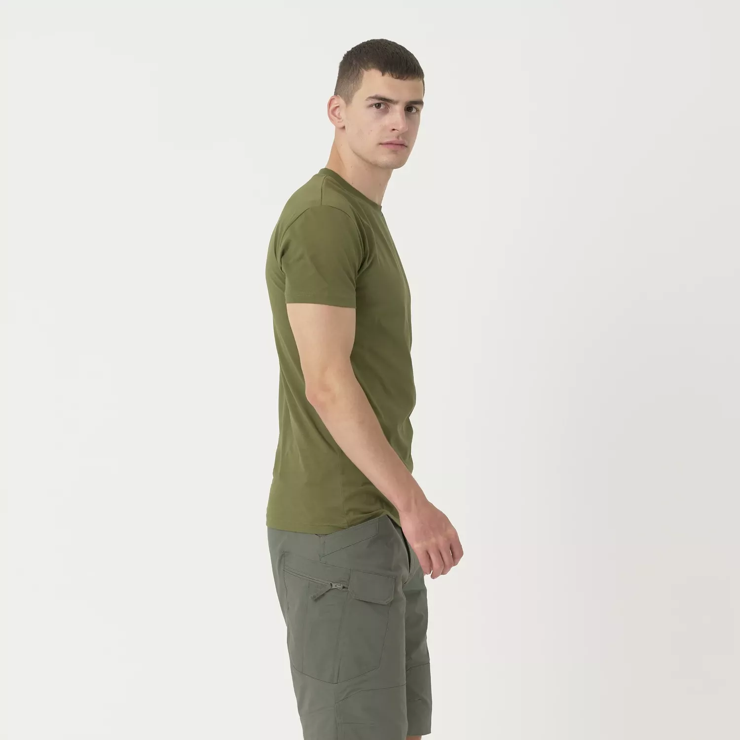 Классическая хлопковая футболка свободного кроя. Характерная форма футболок развилась в начале 20-го века из предшествующего нижнего белья (известного как комбинезон). После Второй мировой войны хлопковые футболки в форме буквы Т стали очень популярны, отчасти благодаря Марлону Брандо и Джеймсу Дину, которые носили их на экране. В нашем ассортименте представлены футболки не только различных цветов, но и с камуфляжным рисунком, так что вы можете выбрать: военную рубашку или так называемую «скромную».