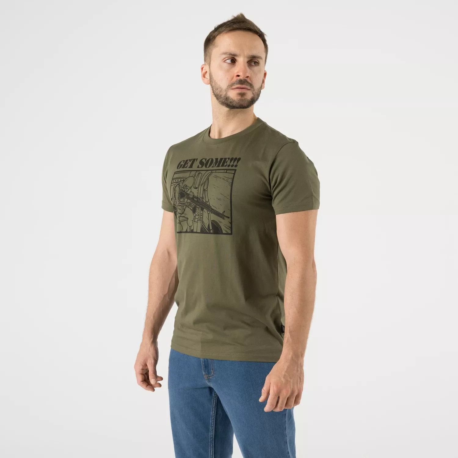 Иногда одного крика достаточно, чтобы войти в историю. Футболка Get some! отдает дань уважения культовой сцене из фильма «Цельнометаллическая оболочка» (1987) режиссера Стэнли Кубрика, в которой солдат, которого играет Тим Колчери, стреляет из вертолета, выкрикивая легендарное «Get some!». Это отсылка к легендарному моменту в военном кино и бескомпромиссному подходу к действию.