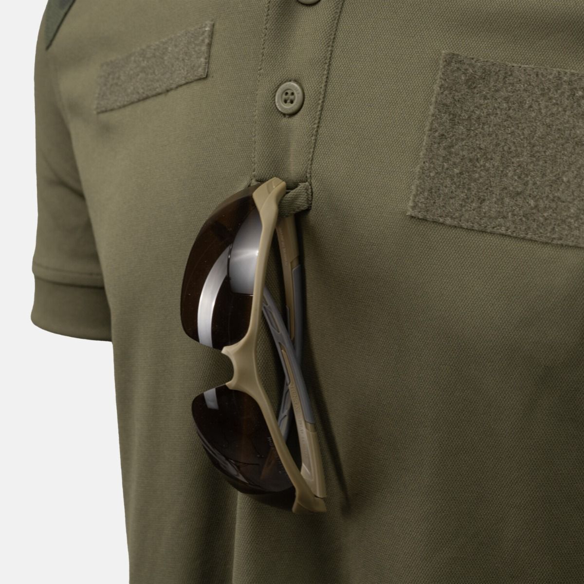 Кроме того, рубашка имеет застежки-липучки: две на рукавах (для знаков отличия) и две на груди (для нашивок с воинским званием и именных бирок). Застежка на пуговицах дополнена практичной петлей для крепления солнцезащитных очков.