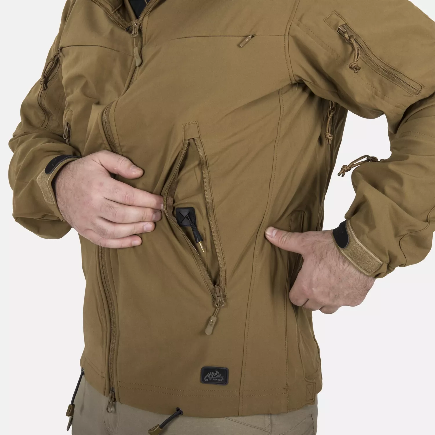 Тактическая куртка Cougar имеет 7 карманов: плечевые карманы с отверстиями для проводов, нагрудные карманы с D-образными кольцами и классические карманы на молниях и липучках. Скрытый капюшон в воротнике быстро раскладывается с помощью молнии.