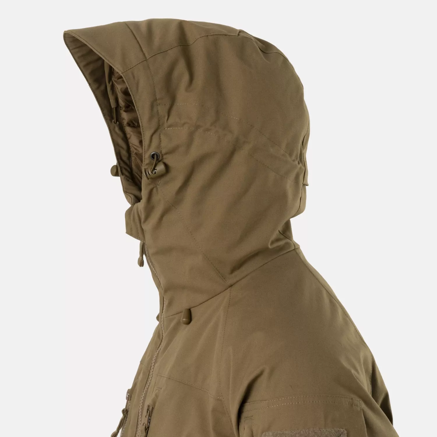 Глубокий Капюшон с козырьком и 3-точечной регулировкой обеспечивает точную посадку по голове. Высокий воротник обеспечивает тепловой комфорт.