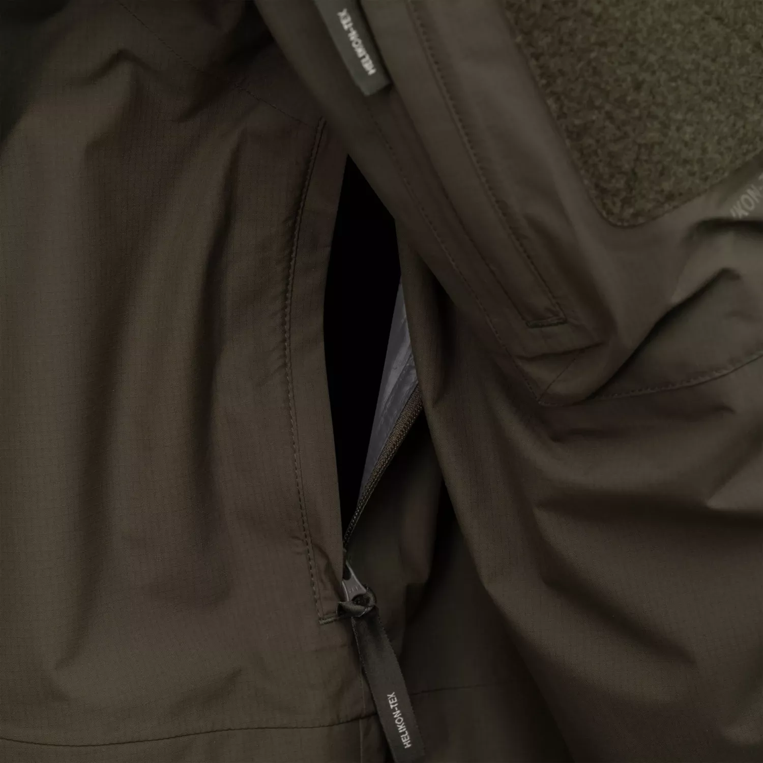 Они эффективно блокируют воду, не влияя на плавность работы молний. Удобная двухсторонняя основная молния YKK и застежка-кнопка Prym обеспечивают водонепроницаемость куртки и позволяют легко регулировать ее посадку во время движения в полевых условиях.