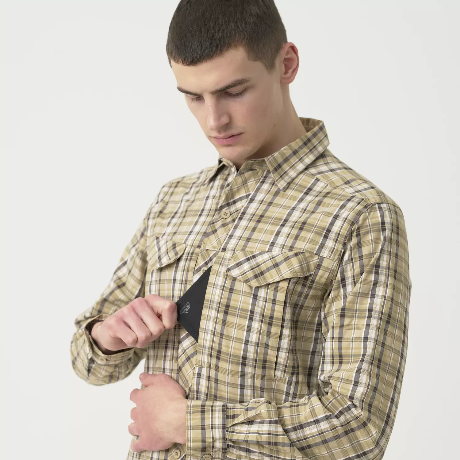 Рубашка Defender Mk2 City — это городская тактическая рубашка на пуговицах с ненавязчивым логотипом Helikon-Tex. Нагрудные карманы оснащены липучками, а снизу расположены дополнительные плоские карманы на молниях YKK. Материал имеет рейтинг UPF30, защищающий от УФ-излучения, что делает рубашку подходящей и для солнечных дней. Отличительными особенностями являются практичная петля для очков и вентиляция подмышками, что особенно важно в теплые дни.