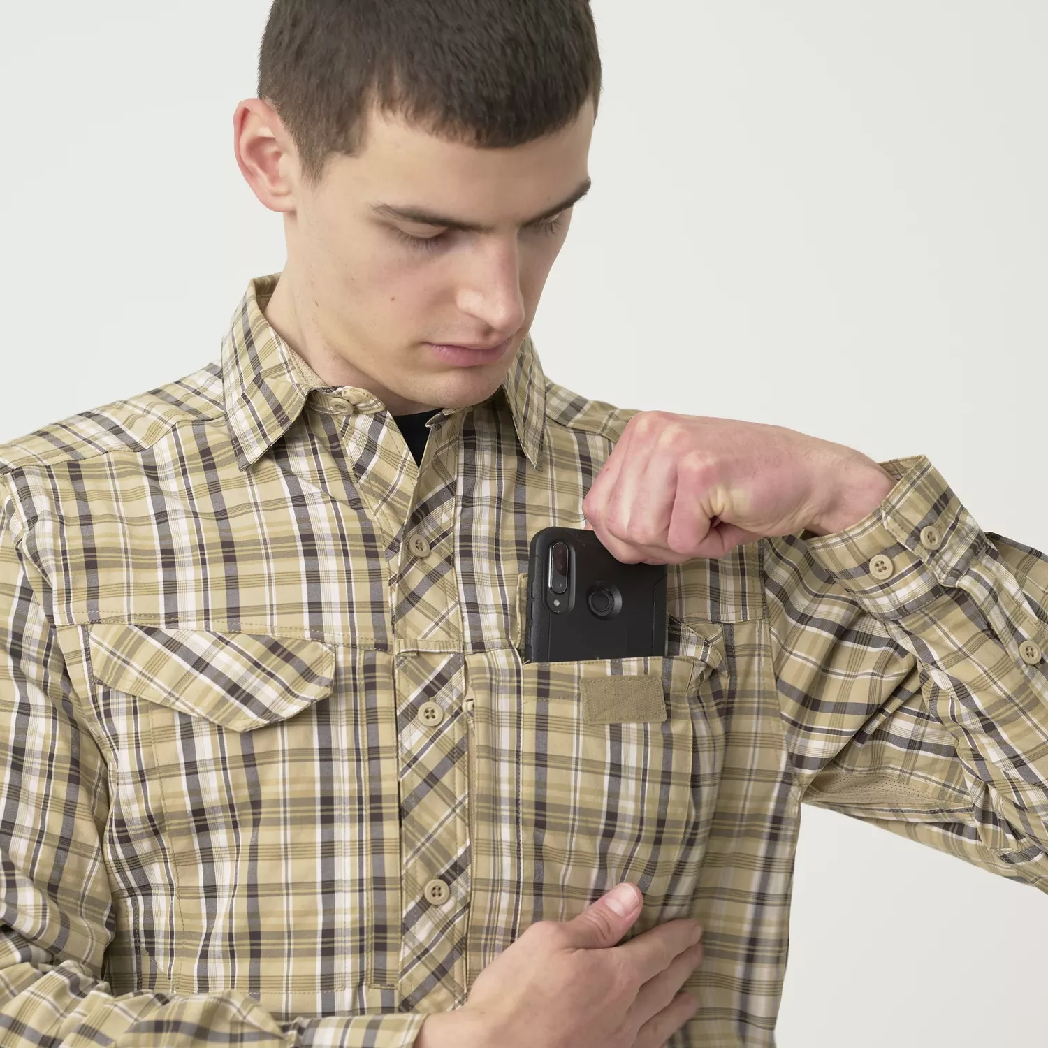 Рубашка Defender Mk2 City — это городская тактическая рубашка на пуговицах с ненавязчивым логотипом Helikon-Tex. Нагрудные карманы оснащены липучками, а снизу расположены дополнительные плоские карманы на молниях YKK. Материал имеет рейтинг UPF30, защищающий от УФ-излучения, что делает рубашку подходящей и для солнечных дней. Отличительными особенностями являются практичная петля для очков и вентиляция подмышками, что особенно важно в теплые дни.