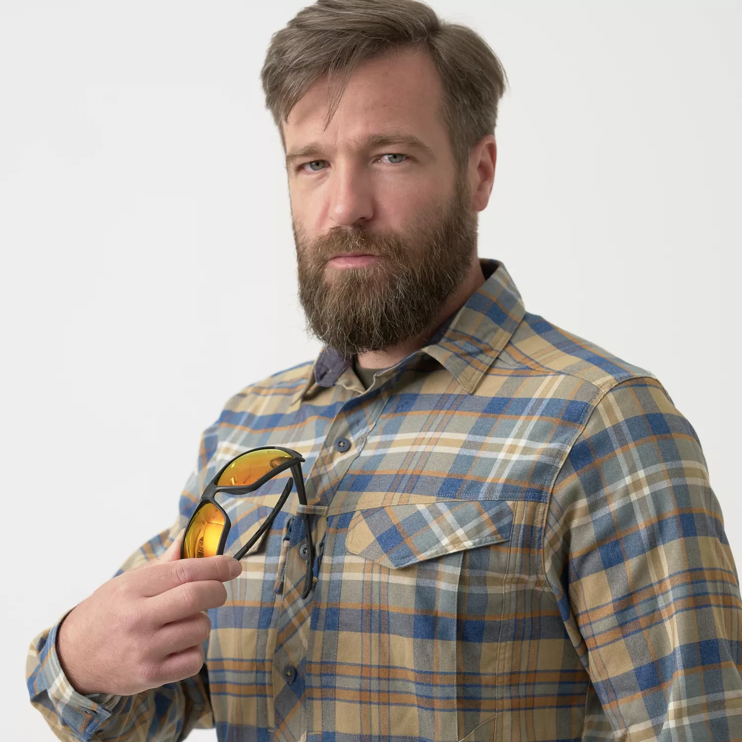 Современная рубашка для любых действий. Тактическая рубашка Defender Mk2 Pilgrim — это высококачественная одежда, разработанная для использования как в дикой природе, так и в городских условиях. Она изготовлена из прочной ткани, усиленной волокнами DuPont™ Sorona, которые предотвращают образование неприятных запахов и обладают превосходными воздухопроницаемыми свойствами. Этот материал также имеет индекс UPF50, обеспечивая эффективную защиту от вредного ультрафиолетового излучения. Эта универсальная рубашка имеет свободный крой, идеально подходящий для активного отдыха и тактического использования. Она застегивается на прочные пуговицы с ненавязчивым тиснением логотипа Helikon-Tex. Рубашка имеет четыре стратегически расположенных кармана: два основных с застежками-липучками и два дополнительных кармана «Наполеон» с молниями YKK, повышающими безопасность переносимых вещей. Кроме того, на планке с пуговицами есть петля для подвешивания очков, а под воротником имеется небольшое усиление, предотвращающее его скатывание.
