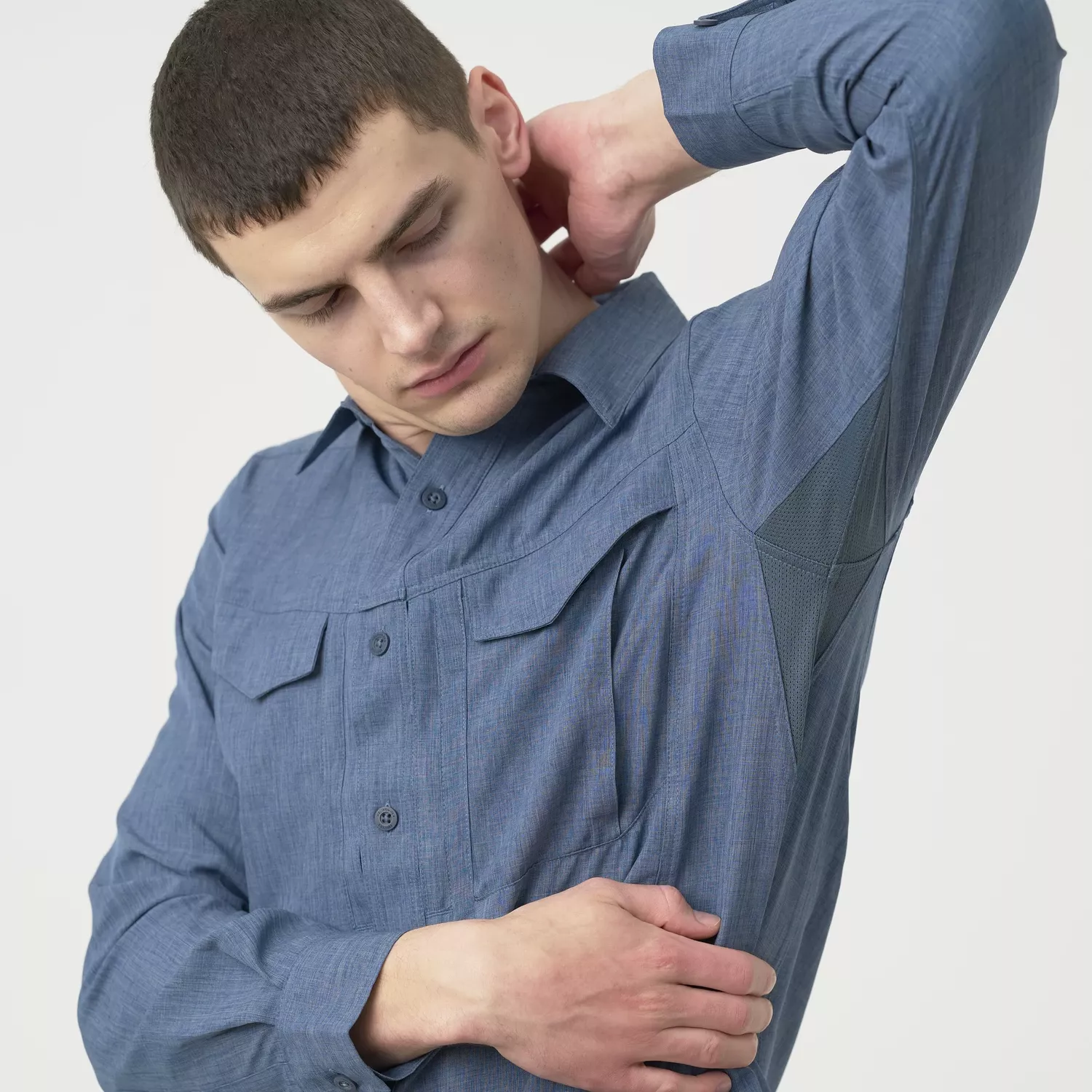 Сетчатые вставки под мышками улучшают циркуляцию воздуха, обеспечивая комфорт даже в теплые дни. Рубашка имеет свободный крой, не стесняющий движений, что делает ее идеальной для ношения с низкопрофильным баллистическим жилетом или кобурой внутрибрюшного ношения.