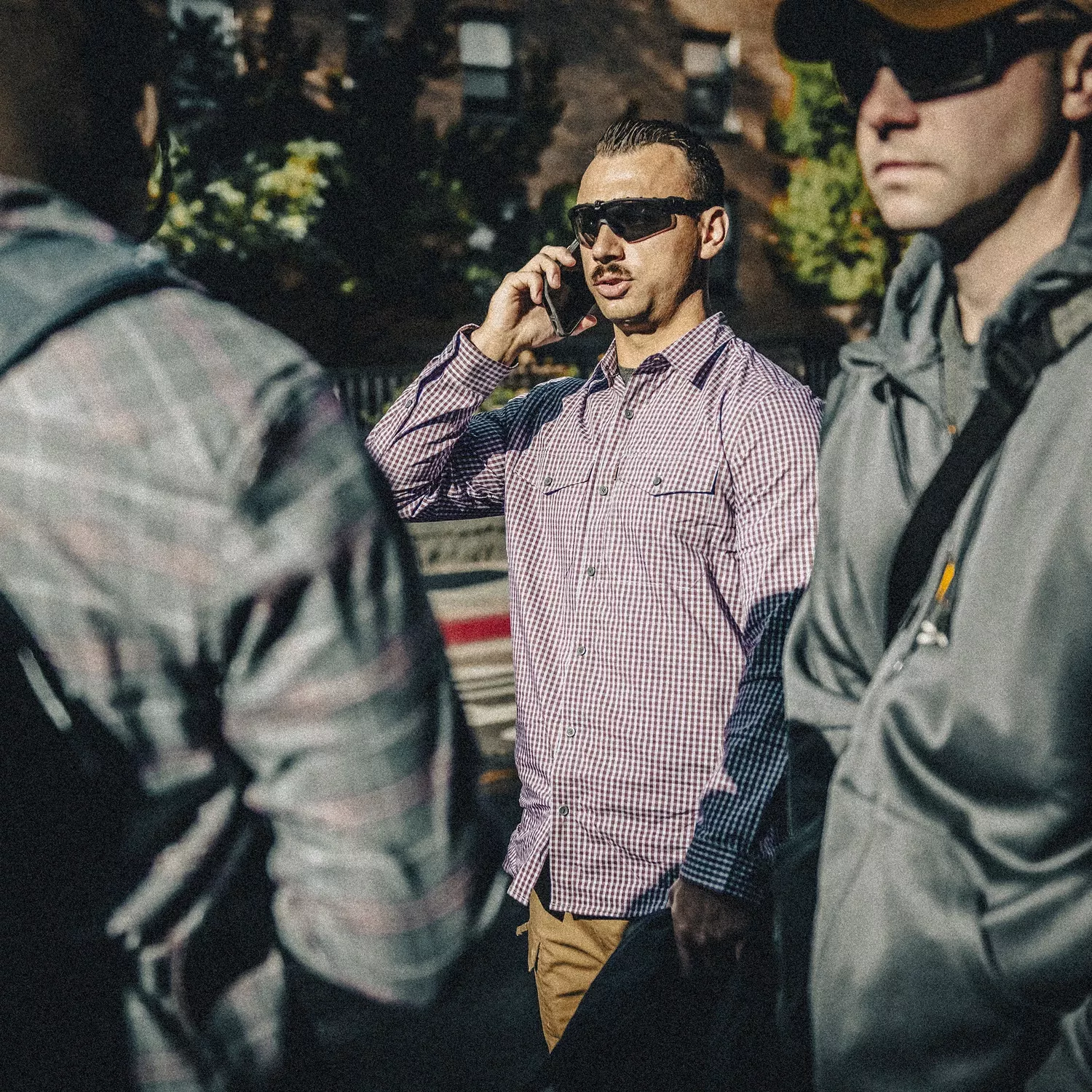 Клетчатая рубашка Concealed Carry отличается несколькими практичными решениями. Два нагрудных кармана и один потайной карман на молнии обеспечивают безопасное место для хранения ценных вещей. Она также имеет уникальную систему застежек — кнопки, которые выглядят как пуговицы, но обеспечивают мгновенный доступ к огнестрельному оружию, магазинам, телескопической дубинке и другим полезным аксессуарам, которые носят под рубашкой.