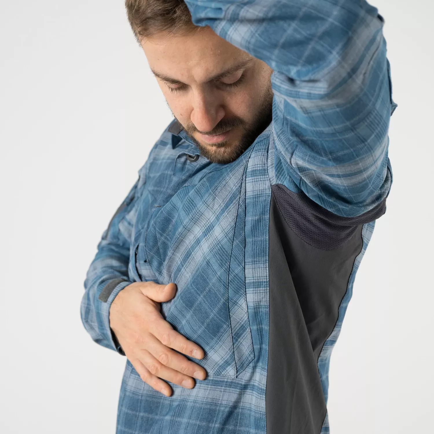 В ключевых зонах – по бокам – мы использовали панели VersaStretch, которые двигаются вместе с вами. Четыре кармана на молнии YKK (два на груди и два на рукавах) позволяют безопасно хранить мелкие предметы первой необходимости. Рубашка отделана канадскими пуговицами и петлями для персонализации – так что она именно такая, какой вам нужна.